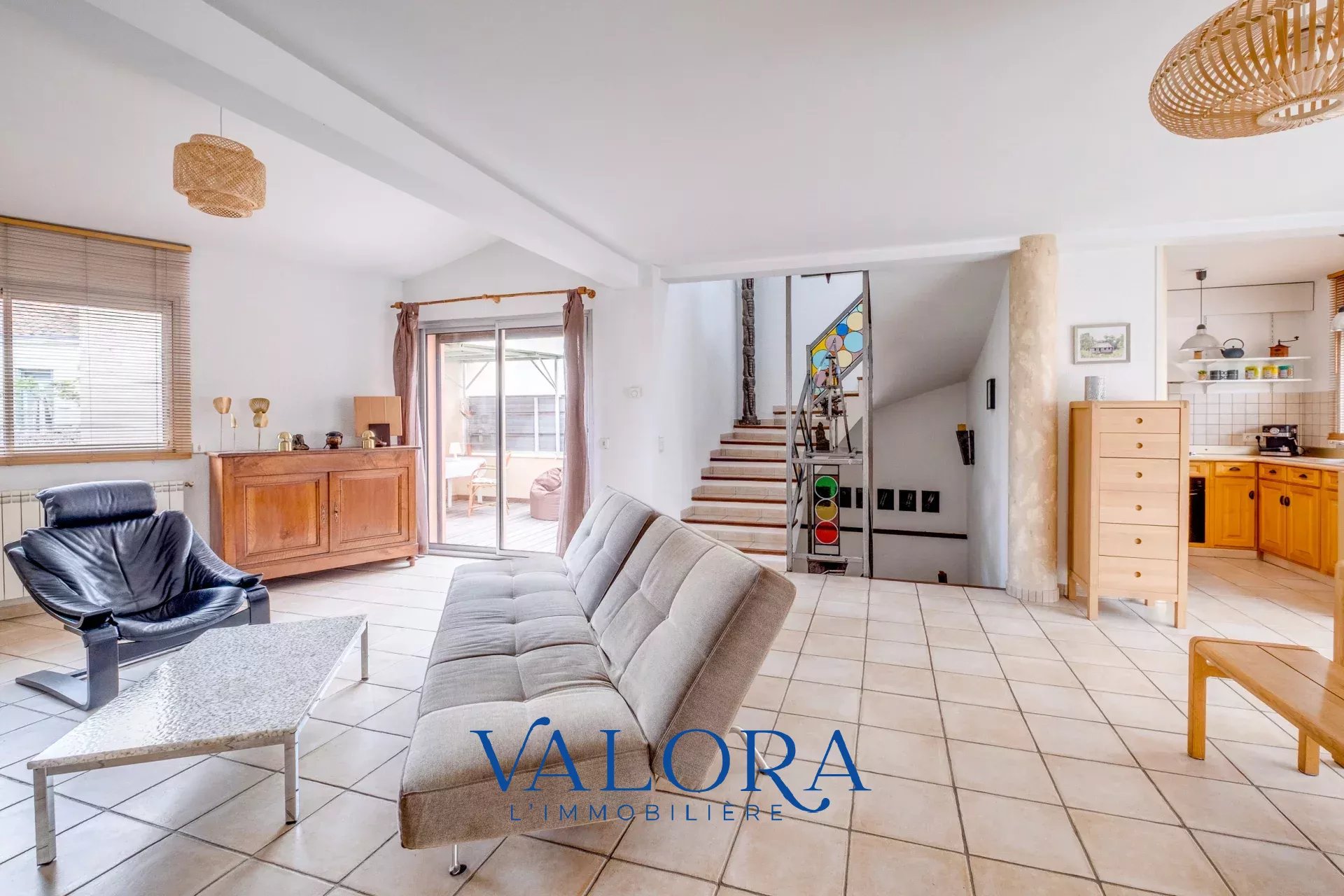 A l'étage on trouve une pièce à vivre traversante de 60m² avec une terrasse de 14m². Au 2ème étage on retrouve une spacieuse chambre de 32m² (divisible en 2 chambres si besoin) et une salle de bains. Possibilité également d'aménager le rez-de-chaussée et de créer 3 chambres au 1er étage.