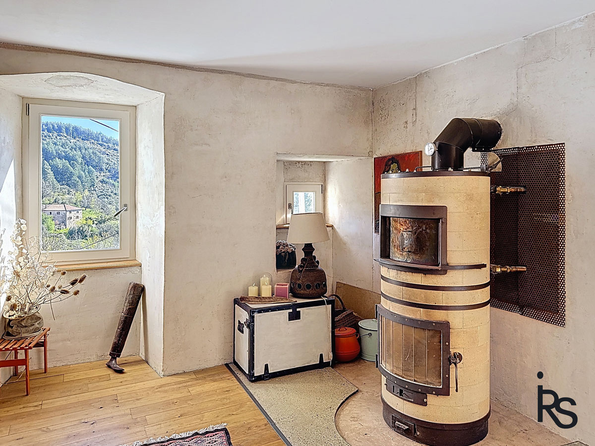 VAL DE LIGNE : sur les hauteurs d'un village typique, une maison ardéchoise rénovée de 261 m2 habitables, avec 4552 m2 de jardin en terrasses et 9348 m2 de terrain séparé. Elle comprend un logement principal de 187 m2 avec une cuisine - salle à manger, une arrière-cuisine ; au premier étage, un salon, une chambre avec une salle de bains et un bureau ; au deuxième étage, deux chambres dont l'une avec salle d'eau et l'autre avec salle de bains, W.C., un bureau et un WC séparé ; d'une dépendance composée de deux studios de 35 m2 39 m2, d'un garage de 22 m2 et d'une petite dépendance de 2 x 20 m2 aménageables. Tout à l'égout, chauffage au bois et climatisation réversible. Possibilité d'exploiter en accueil touristique et en restauration.