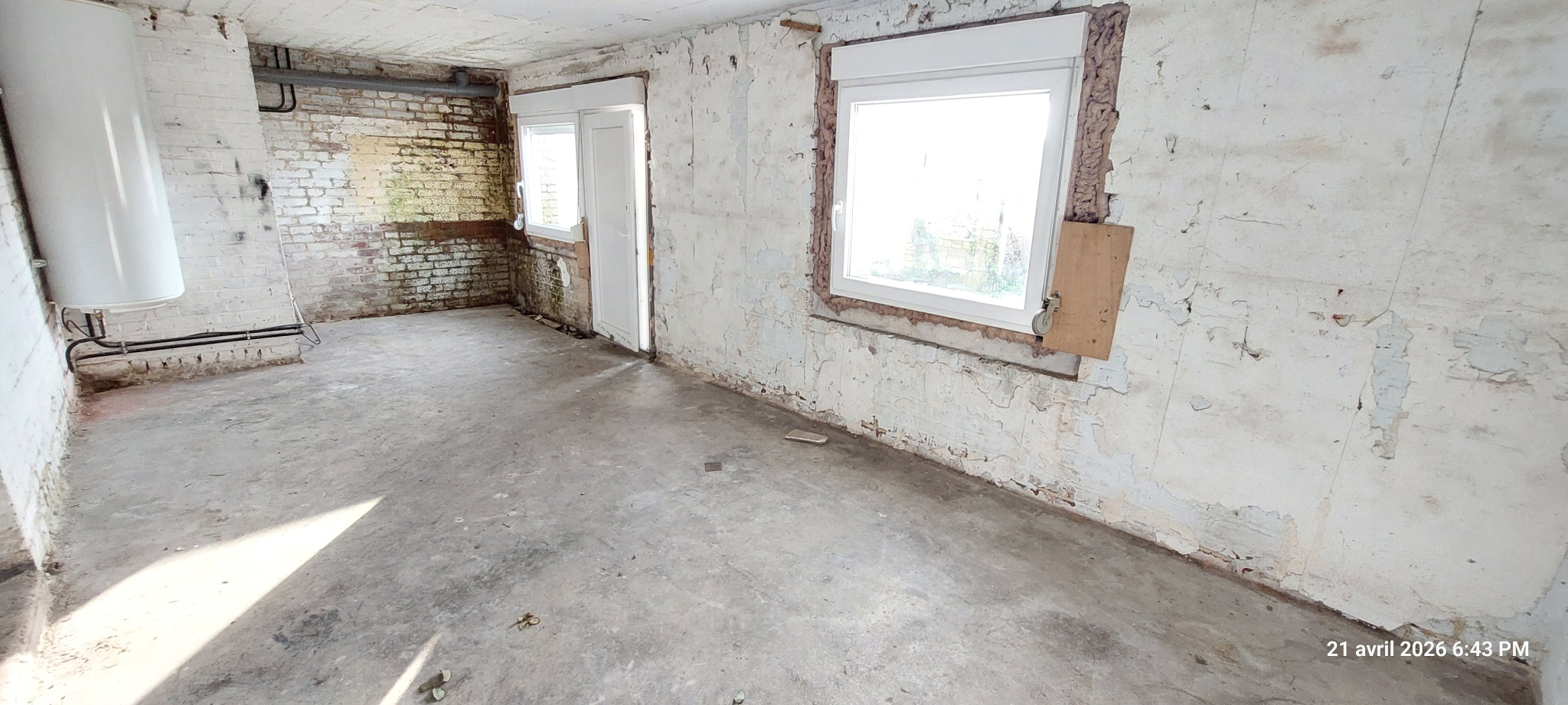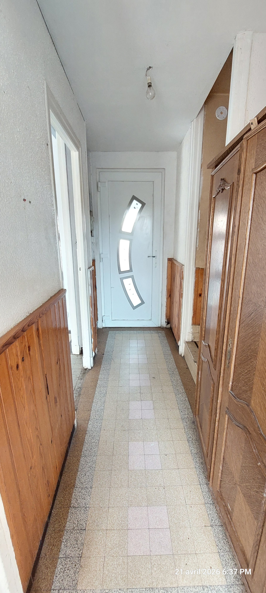Située à proximité de CAMBRAI, dans un secteur calme et proche des commerces, maison mitoyenne en briques de 71 m2 à conforter comprenant :