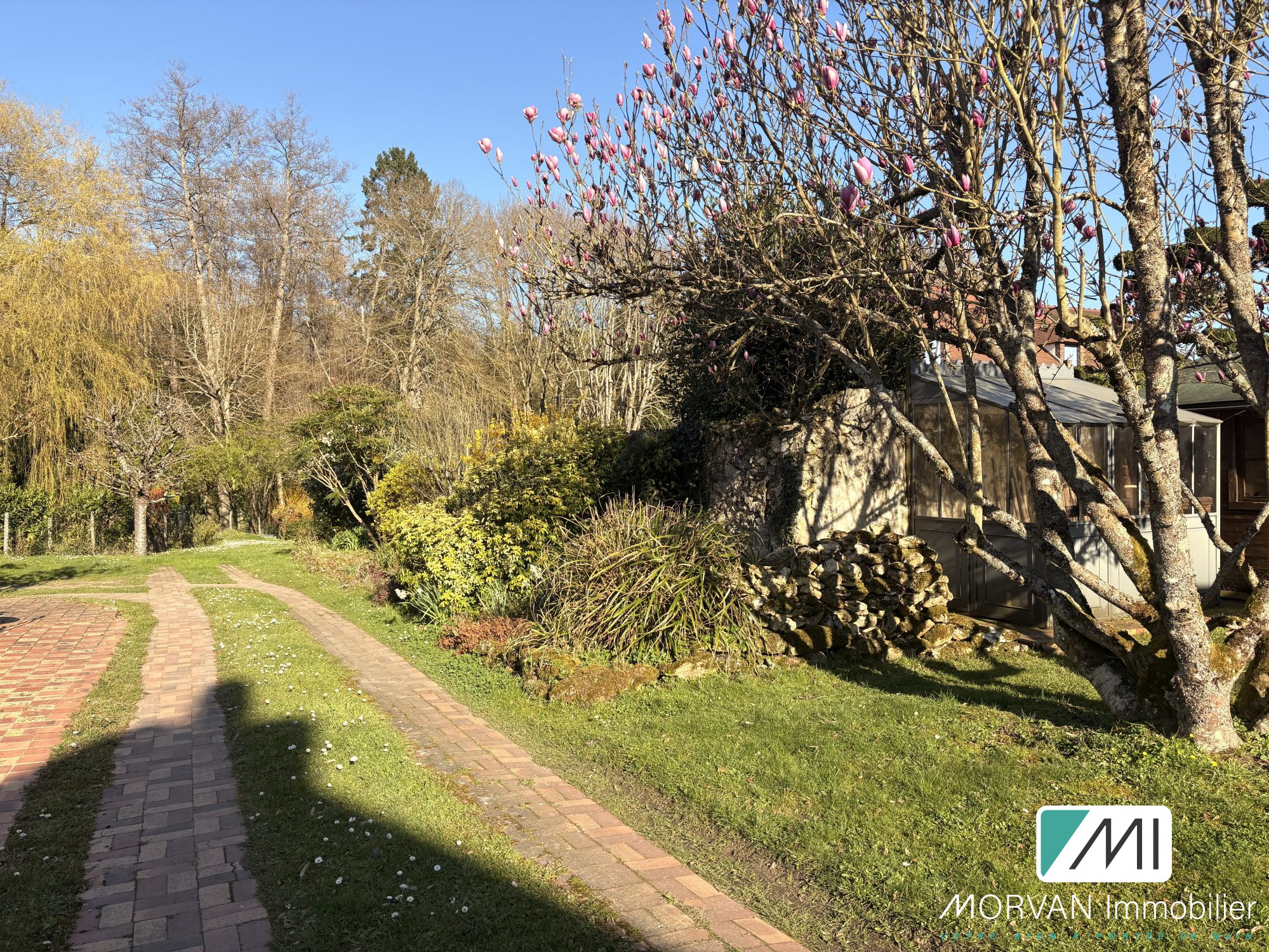 Le tout sur un terrain arboré de 1 350 m² avec piscine chauffée, terrasse plein sud, grand atelier en pierre et deux cabanons. À noter également un abri ouvert de 21 m², anciennement utilisé comme garde-bois, qui offre de belles perspectives : espace de stockage, coin bricolage, espace détente ou même prolongement de l'atelier.