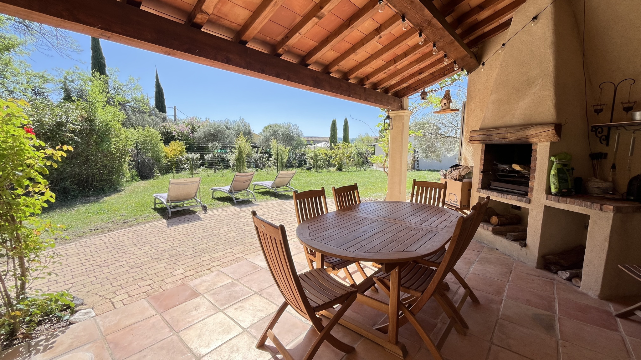 Le jardin est clôturé et agrémenté d'oliviers et de plantes locales. Une terrasse au Sud avec pergola végétalisée permet de profiter des journées ensoleillées.