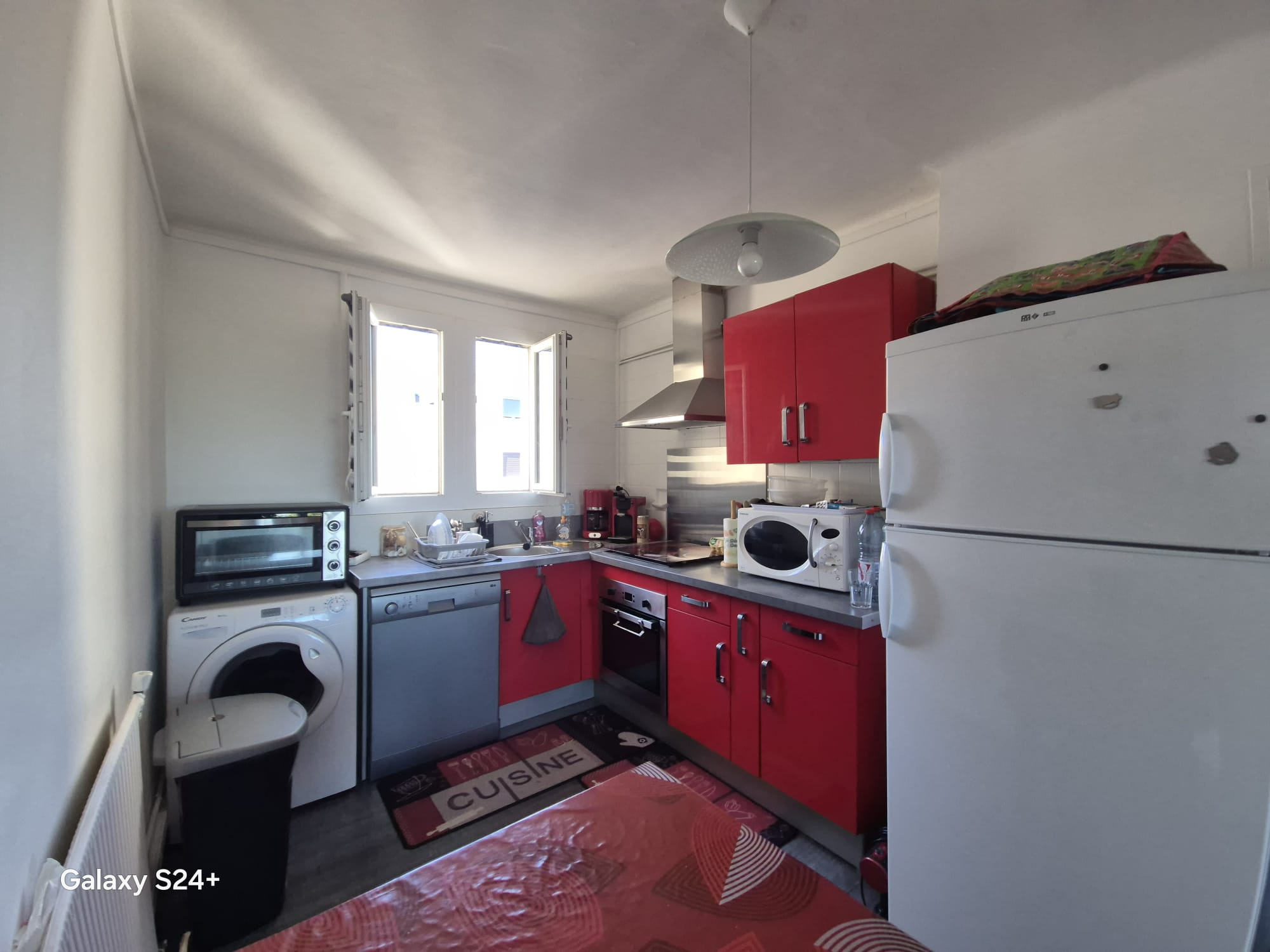 La cuisine, récemment rénovée et aménagée, s'intègre harmonieusement à cet espace de vie, alliant fonctionnalité et praticité.