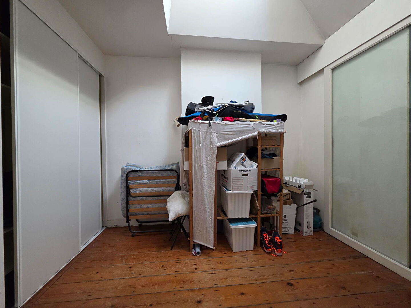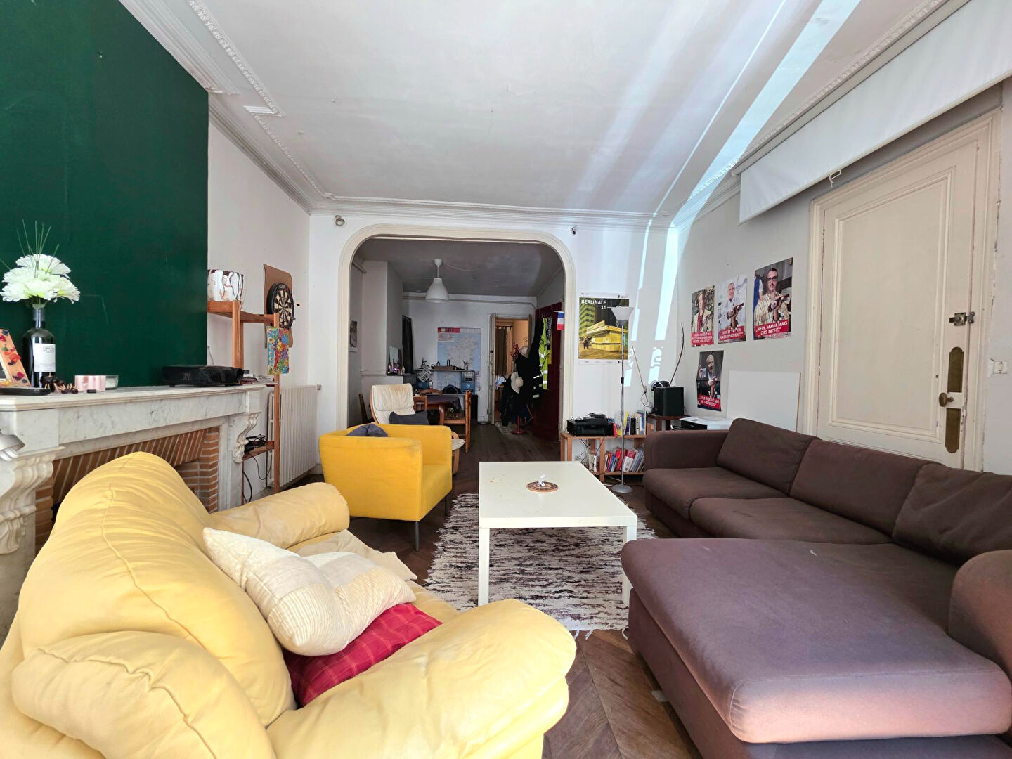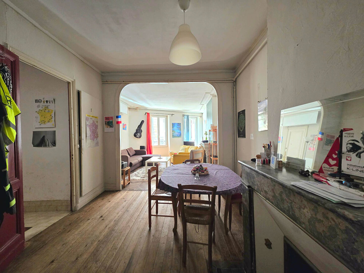 Elle dispose actuellement de 4 grandes chambres, des combles aménageables pour créer une 5 ème chambre ou un bureau, d'un double salon-séjour, d'une cuisine séparée et d'un espace extérieur d'environ 18m2.