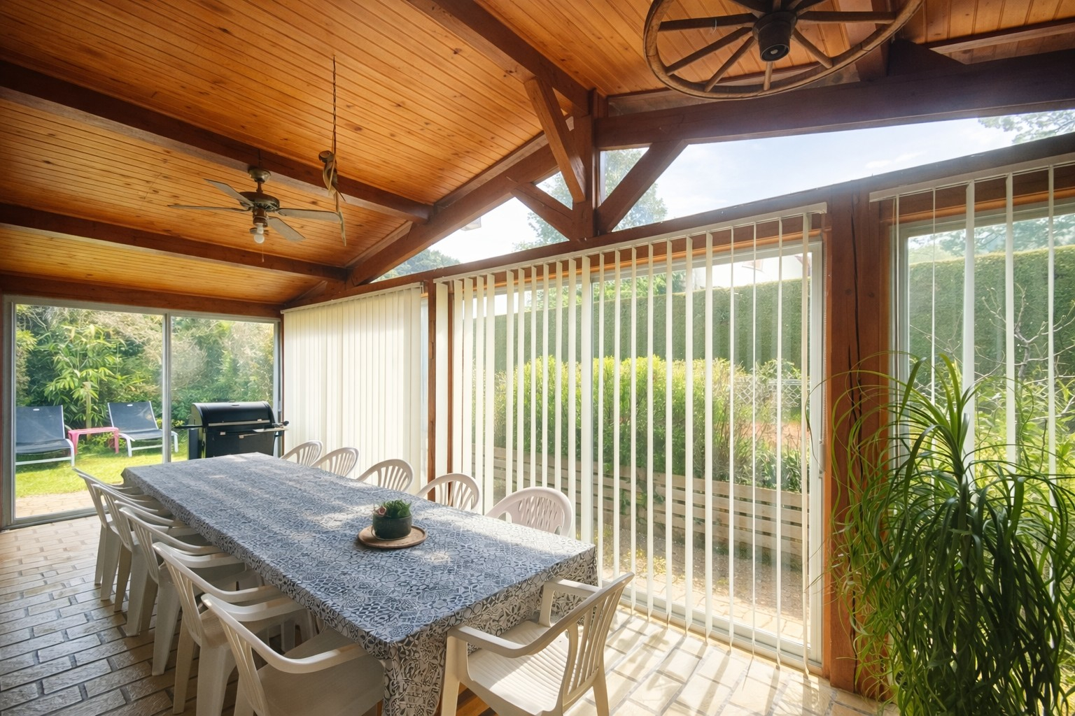 Prolongement naturel de la maison, une véranda d'environ 25 m², baignée de lumière, devenant un véritable lieu de vie : un espace où partager des moments en famille, profiter des saisons ou simplement se détendre.