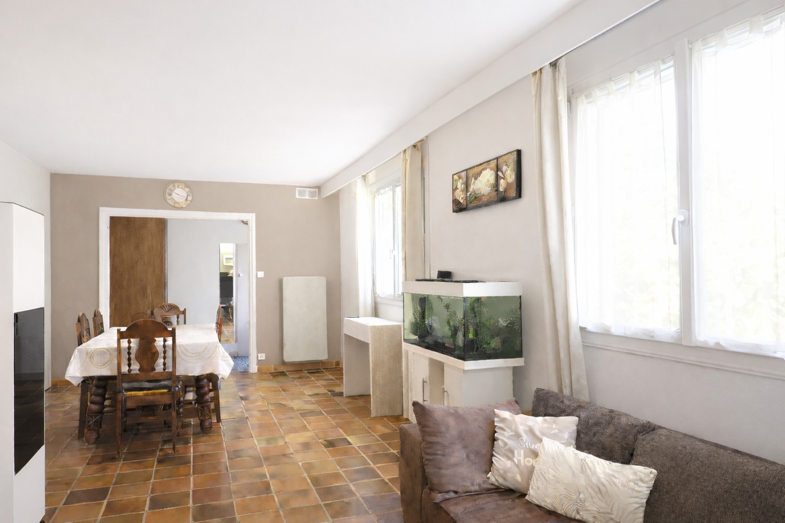 Dès l'entrée, on découvre une partie habitable principale pensée pour le quotidien, avec une distribution fluide, cuisine équipée, séjour, 3 chambres et 2 salles d'eau dont une avec baignoire, permettant de vivre facilement au même niveau.