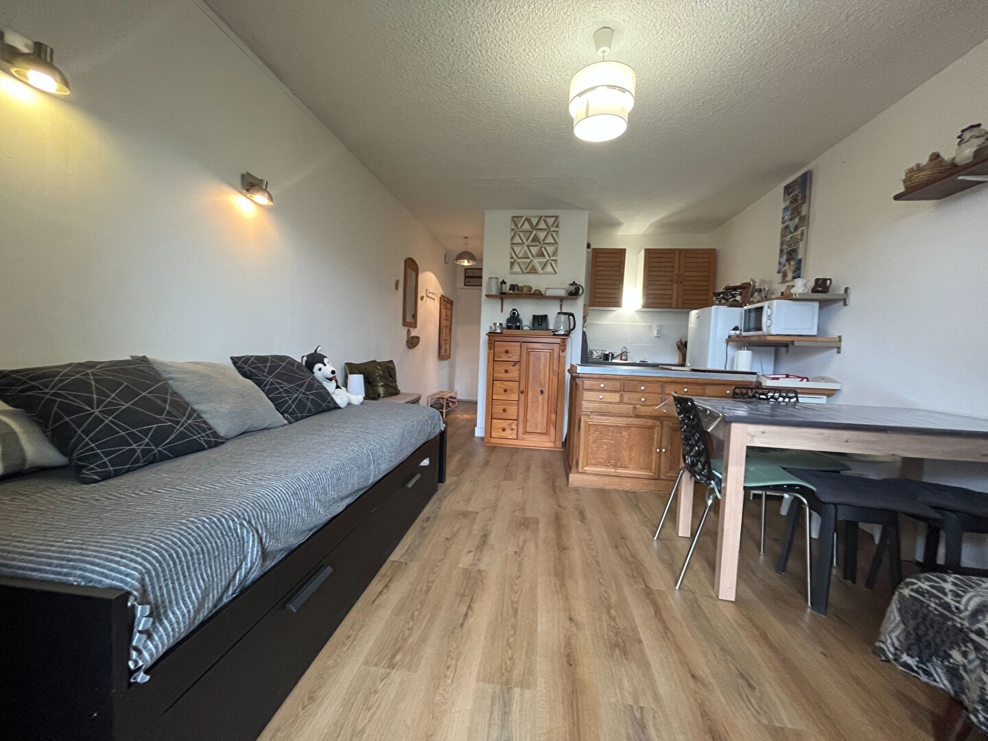 À vendre : charmant studio de 25,5 m², idéalement situé à proximité du centre-ville de Chorges, dans un quartier calme et très agréable. Toutes les commodités sont accessibles à pied, facilitant votre quotidien. Le studio, vendu meublé, comprend un séjour lumineux avec une petite cuisine ouverte, une salle d'eau avec WC rénovée, ainsi qu'un placard de rangement. Ce bien est sublimé par un beau jardin privatif de 60 m², exposé plein sud, offrant un espace extérieur des plus agréables. En complément, vous disposerez d'un grenier au deuxième étage de la copropriété, ainsi qu'un parking collectif.