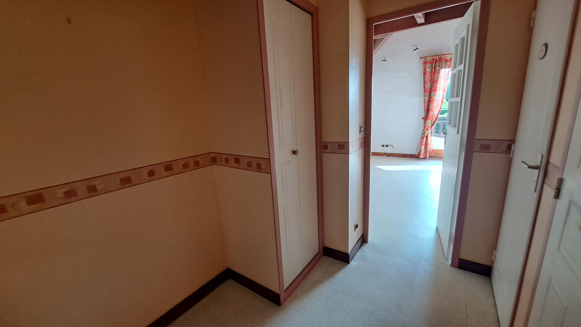 A L'étage, vous disposez d'une grande coursive avec de nombreux rangements donnant sur la pièce de vie et desservant deux chambres mansardées, non comprises dans le mesurage carrez amenant la surface à env 60m² au sol.