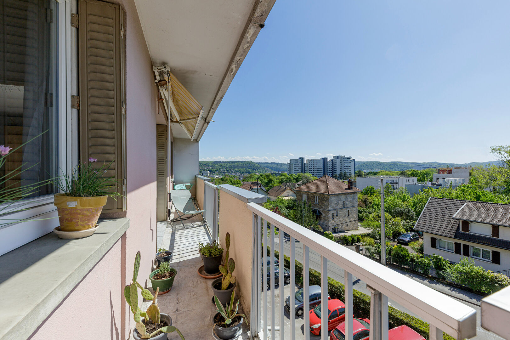 L'appartement dispose de 2 chambres, la troisième a été intégrée à la pièce de vie, qui donne sur un balcon orienté Ouest et bénéficie d'une jolie vue sur les collines bisontines.