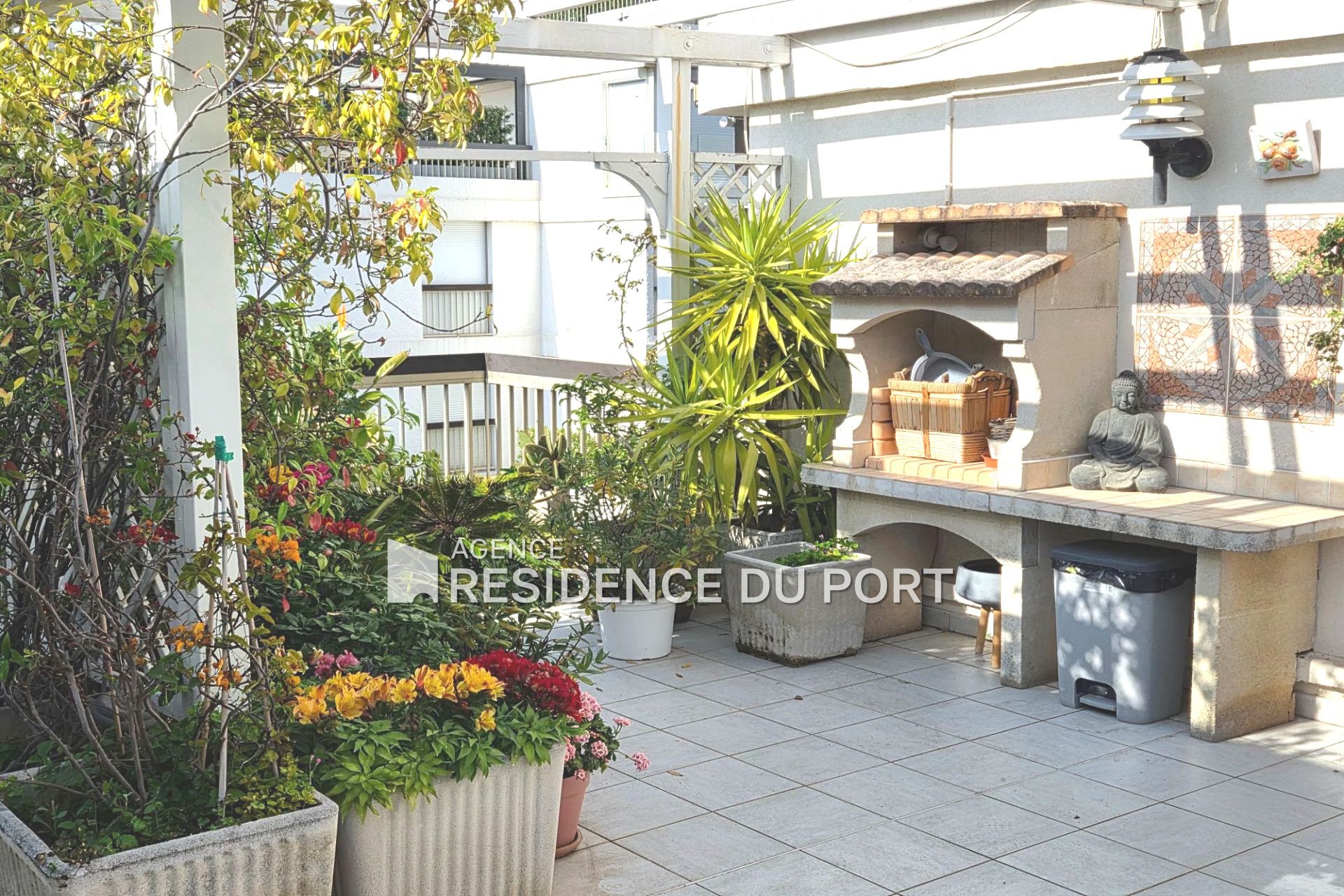 À la RÉSIDENCE DU PORT, résidence d'exception située en front de mer, pieds dans l'eau à Mandelieu la Napoule, proche d'un célèbre Golf et de toutes commodités à pied, jouissant d'une plage, piscine, tennis, parc, superbe appartement 4 pièces de 97m² habitable (84m² carrez + 13m² de loggia fermée), jouissant d'une petite vue mer et une vue sur le parc. Il se compose : d'une entrée, cuisine équipée, séjour donnant sur une magnifique terrasse de 46m² toute arborée en exposition Sud et Nord/Ouest, 3 chambres, 2 salles d'eau et 2 toilettes. Vendu avec une cave et un parking. À VISITER RAPIDEMENT...........Pour visiter J.L: 07 53 16 42 76.