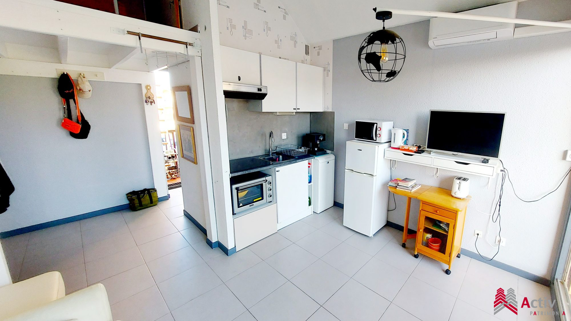 ACTIV PATRIMONIA IMMOBILIER vous invite en EXCLUSIVITE à plonger dans l'univers d'un espace de vie minimaliste, où chaque mètre carré est pensé pour allier fonctionnalité et charme. Cet appartement baigné par la douce lumière du matin filtrée à travers de grandes baies vitrées, vous offre une vue apaisante sur le QUAI de PONANT et se situe à deux pas des jardins environnants. 21,50 m² (Loi Carrez 19,77 m²) où l'espace est optimisé pour créer une ambiance à la fois cosy et confortable. Dès l'entrée, vous êtes accueilli par un agencement ingénieux qui maximise chaque recoin. Le salon salle à manger, ouvert sur une terrasse privative donnant sur La Marina de Gruissan, sont le coeur battant de ce havre de paix. Imaginez vos matins paisibles, savourant un café en contemplant les bateaux et la vie qui s'éveille, ou vos soirées douces, bercées par le calme de la marina La salle d'eau, bien que compacte, est un modèle d'efficacité à votre quotidien. Une pièce de vie épuré et ordonné avec climatisation réversible.