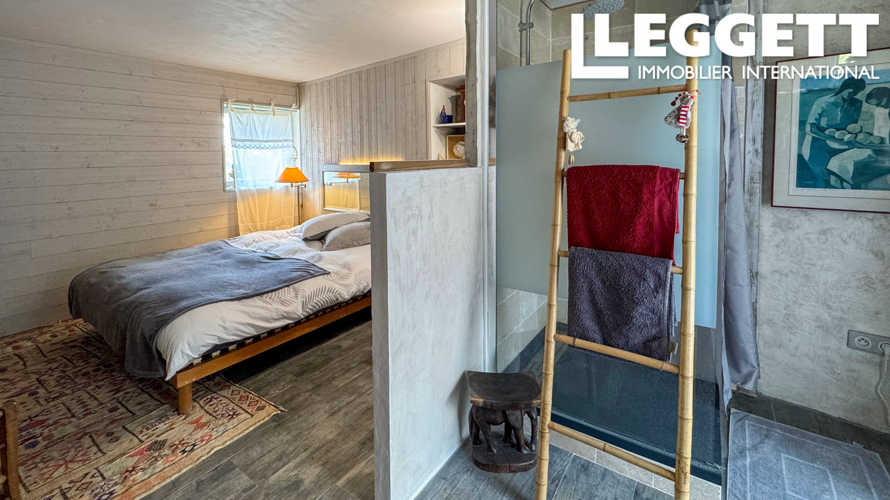 Elle propose 4 chambres, 3 salles de bains, une cuisine équipée élégante et un salon chaleureux avec poêle à bois, idéal comme résidence principale ou maison de vacances haut de gamme.