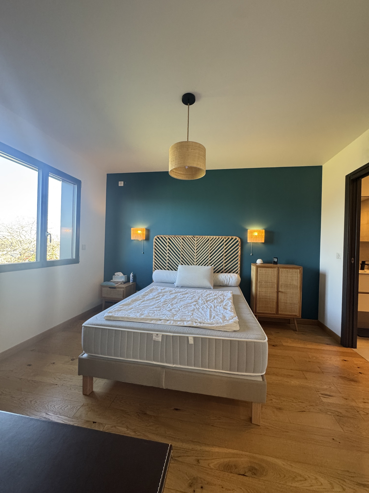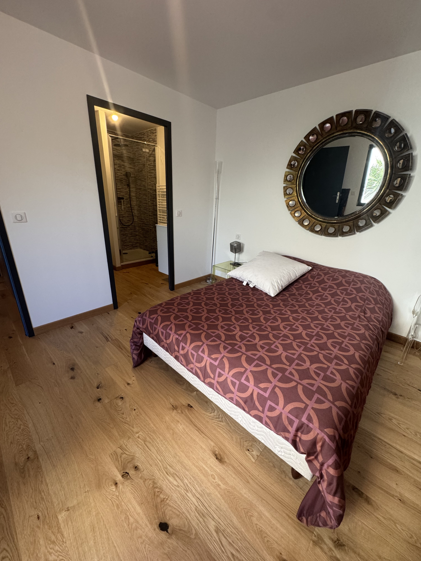Toujours de plain-pied, vous trouverez une suite parentale, une chambre supplémentaire ainsi qu'un WC indépendant.