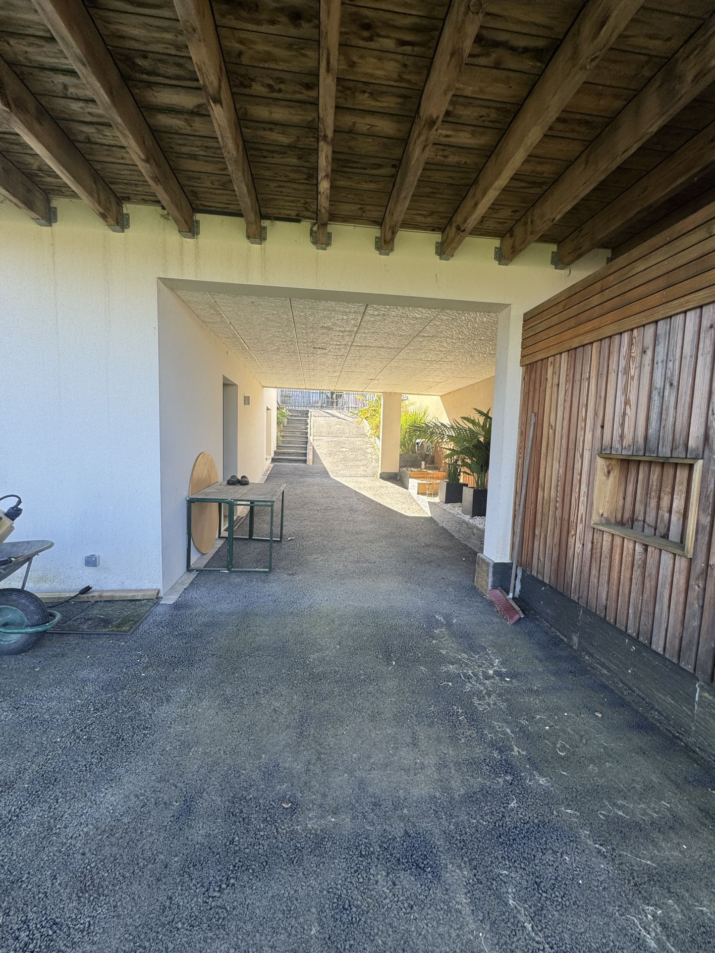 En rez-de-jardin, la maison offre une chambre avec sa salle de bains privative, un dressing et une buanderie, idéal pour un espace indépendant.