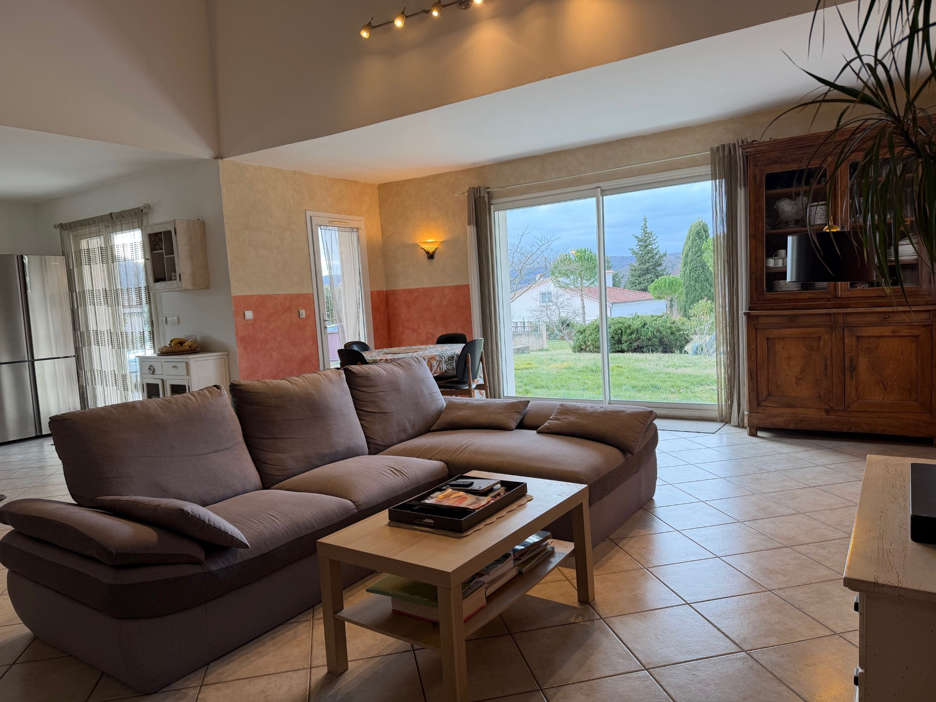 A vendre, à 10 minutes de Montélimar, côté Ardèche, sur les hauteurs de LE TEIL, dans un quartier prisé, agréable villa d'environ 130 m2 habitables comprenant au rez de chaussée : un hall d'entrée, une cuisine ouverte sur séjour, trois chambres, une salle de bains, un wc, un cellier, deux garages. Maison en très bon état, vue dégagée, terrain clos d'environ 3000 m2, quartier calme. A découvrir absolument ! Honoraires à la charge du vendeur. Erp consultable en agence. Estimation des coûts annuels d'énergie entre 1200EUR et 1680EUR. Agence Dupont Immobilier, partenaire de votre projet immobilier. Retrouvez-nous sur www.ardeche-immobilier.com