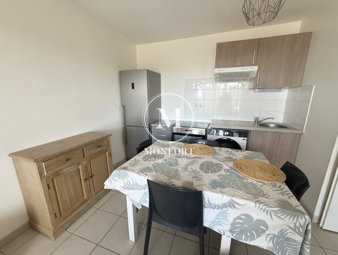 Il se compose d'une entrée, d'un séjour lumineux avec cuisine ouverte donnant accès à un balcon de 7,14 m2, idéal pour profiter des beaux jours sans vis-à-vis. Le coin nuit comprend une chambre ainsi qu'une salle de bain avec wc.