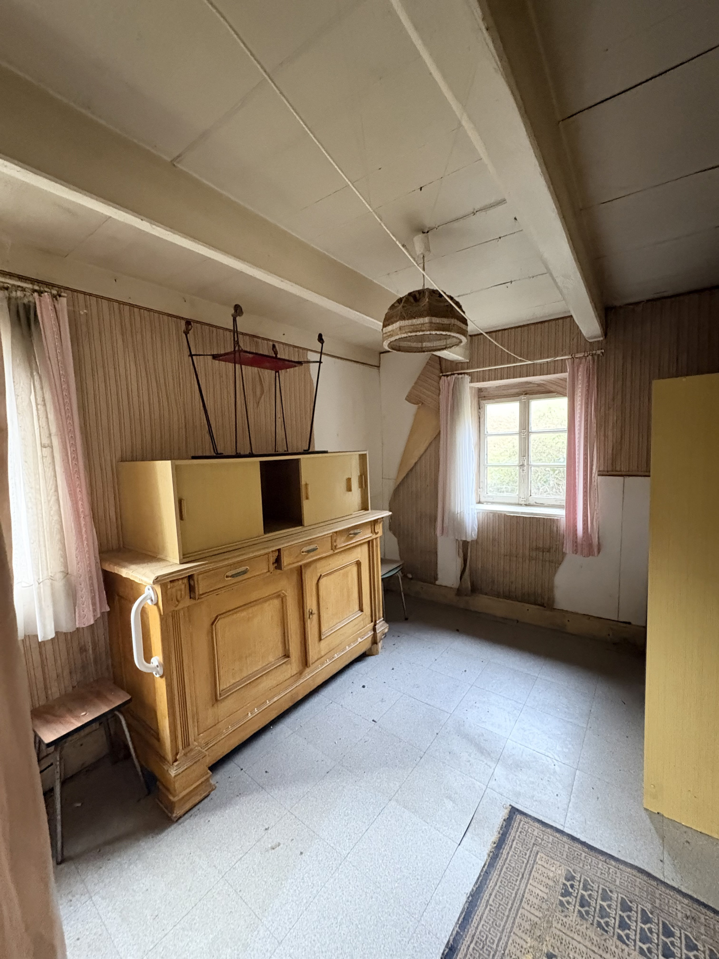 Le bien existant se compose, à l'étage, de trois chambres, tandis que le rez-de-chaussée accueille un salon, une cuisine et une salle de bain. Une cave complète la maison.