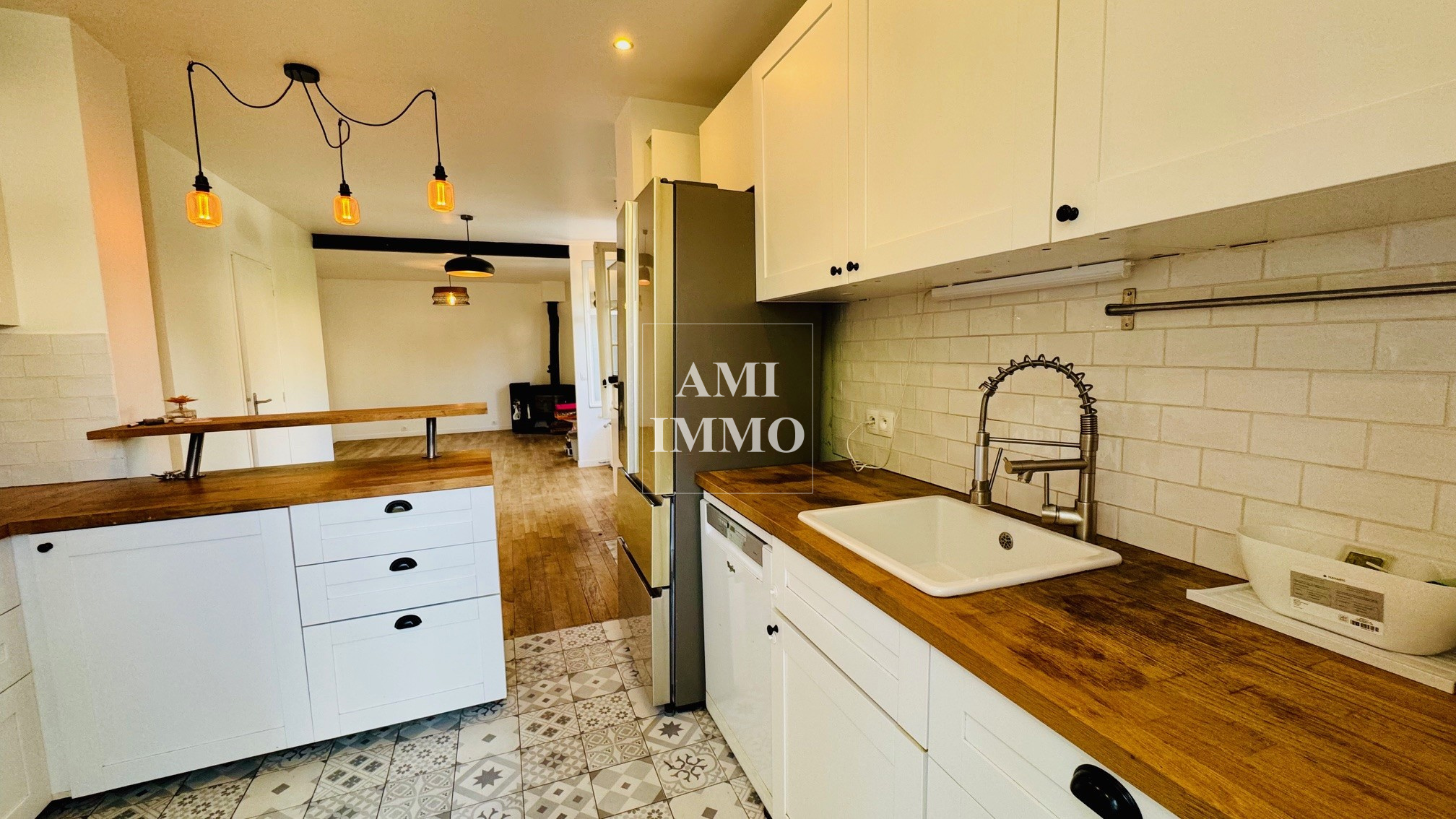 Dès l'entrée, vous serez séduit par une pièce de vie baignée de lumière, offrant une atmosphère chaleureuse et conviviale. La cuisine aménagée s'intègre parfaitement à l'espace pour un usage moderne et fonctionnel.