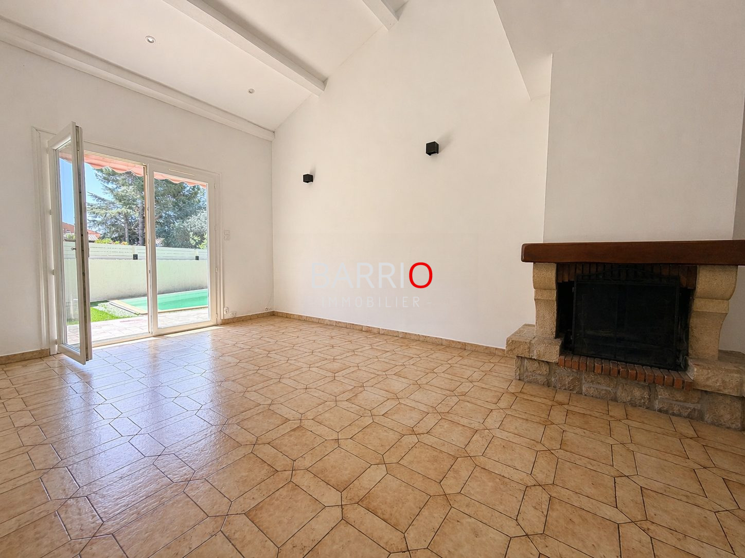 Au rez-de-chaussée, vous découvrirez une lumineuse pièce de vie climatisée ouvrant directement sur un espace extérieur avec une petite piscine, La cuisine indépendante donne accès à un second espace extérieur.