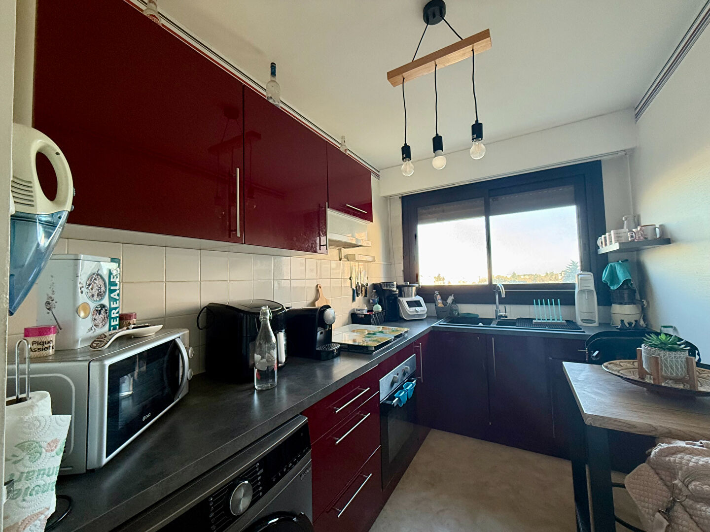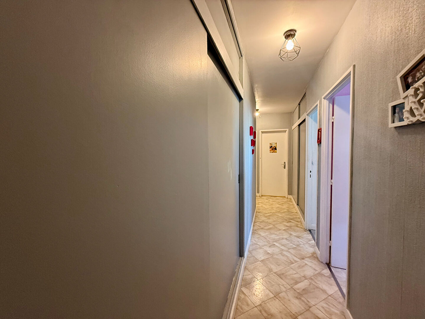Il comprend 3 chambres, un séjour salon , une cuisine aménagée et équipée, une salle de bains, une salle d'eau, un cellier, un appartement idéal pour une vie de famille.