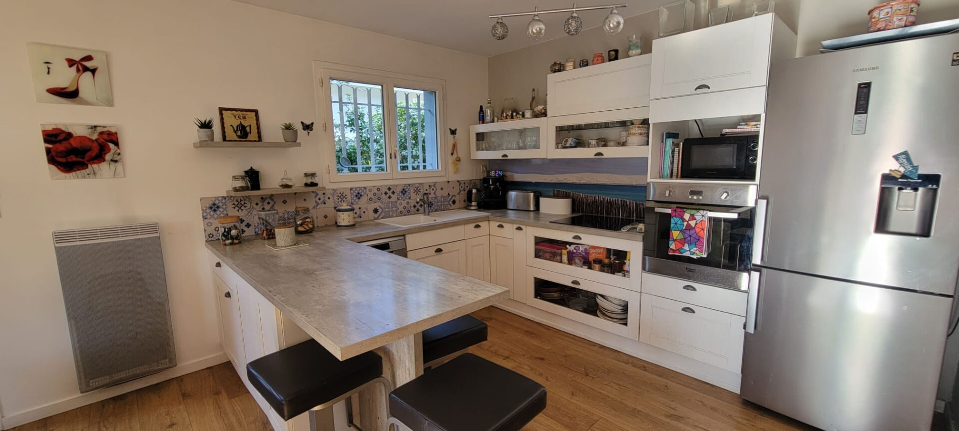 Cette charmante maison vous séduira par sa belle pièce de vie baignée de lumière, avec une cuisine aménagée et équipée ouverte sur le séjour. Un grand cellier vient compléter cet espace .