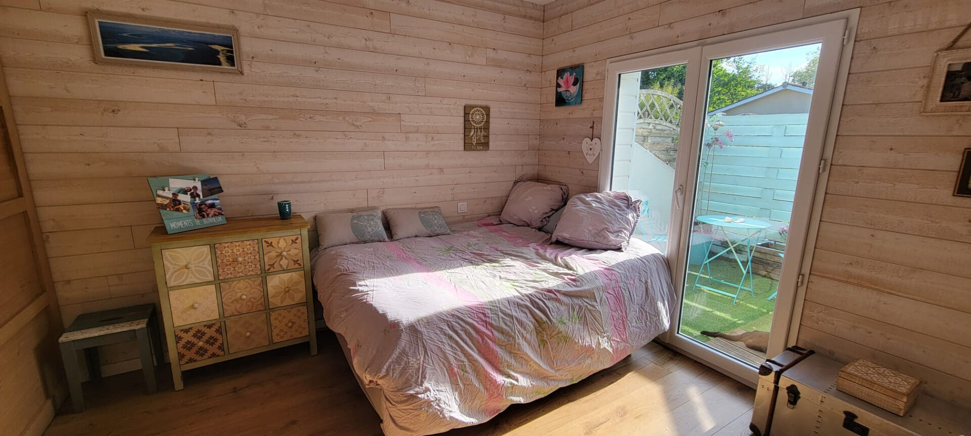 À l'extérieur, profitez d'un environnement calme et sans vis-à-vis avec une jolie terrasse équipée d'un store banne, idéale pour vos moments de détente, ainsi qu'un grand cabanon offrant un espace de rangement supplémentaire.