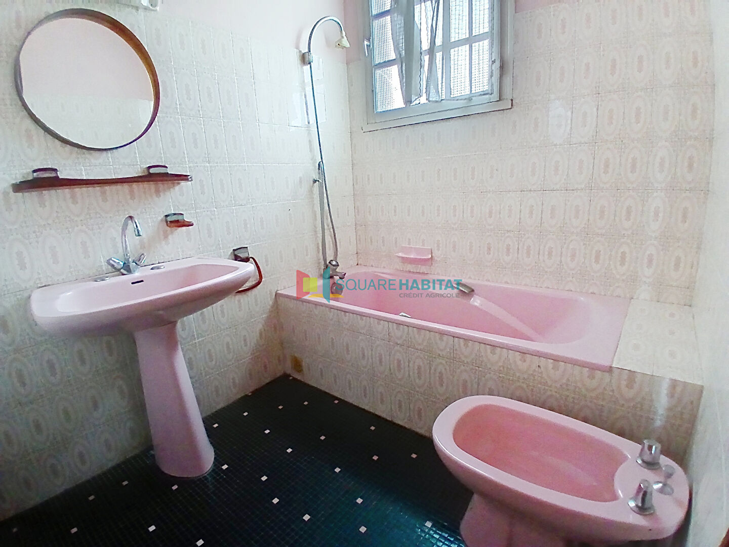 Construite dans les années 1970 sur sous-sol complet elle présente une surface habitable de 130 m2. Elle se compose d'un couloir d'entrée, cuisine, séjour avec cheminée, 2 chambres, 1 salle de bains et WC . A l'étage, le palier dessert 3 chambres, un cabinet de toilette et 1 WC