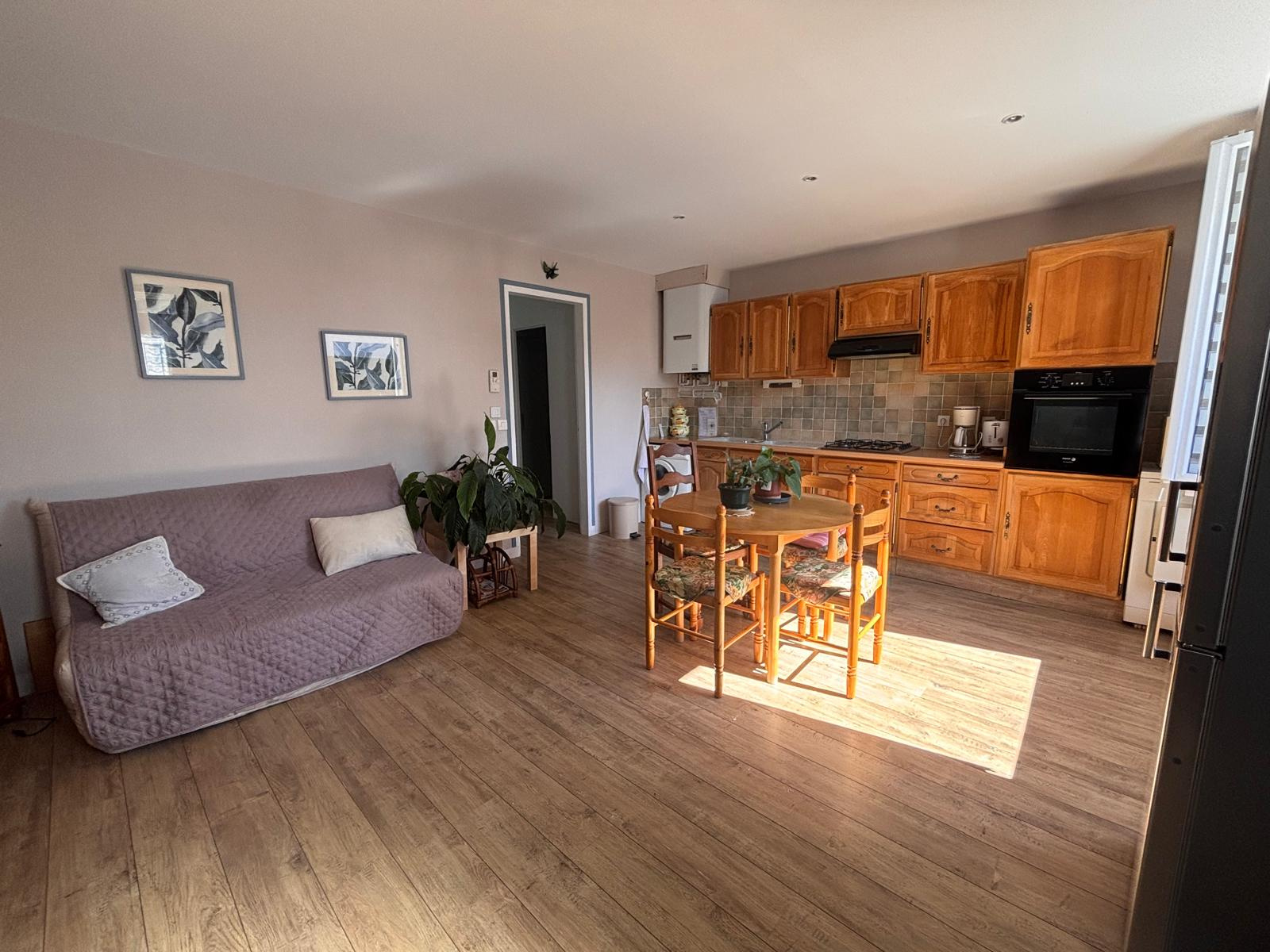 Dès l'entrée, découvrez une belle pièce de vie lumineuse comprenant un séjour et une salle à manger avec cuisine ouverte entièrement équipée. La maison propose également une chambre confortable, une salle d'eau fonctionnelle ainsi qu'un WC séparé.