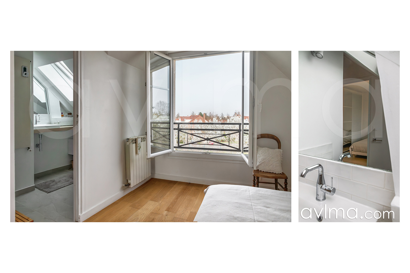 - le dernier niveau, tout aussi lumineux et à la vue dégagée, est composé de deux chambres avec très grandes fenêtres de toit, une salle de bains, un bureau, une chambre parentale avec salle de douche.