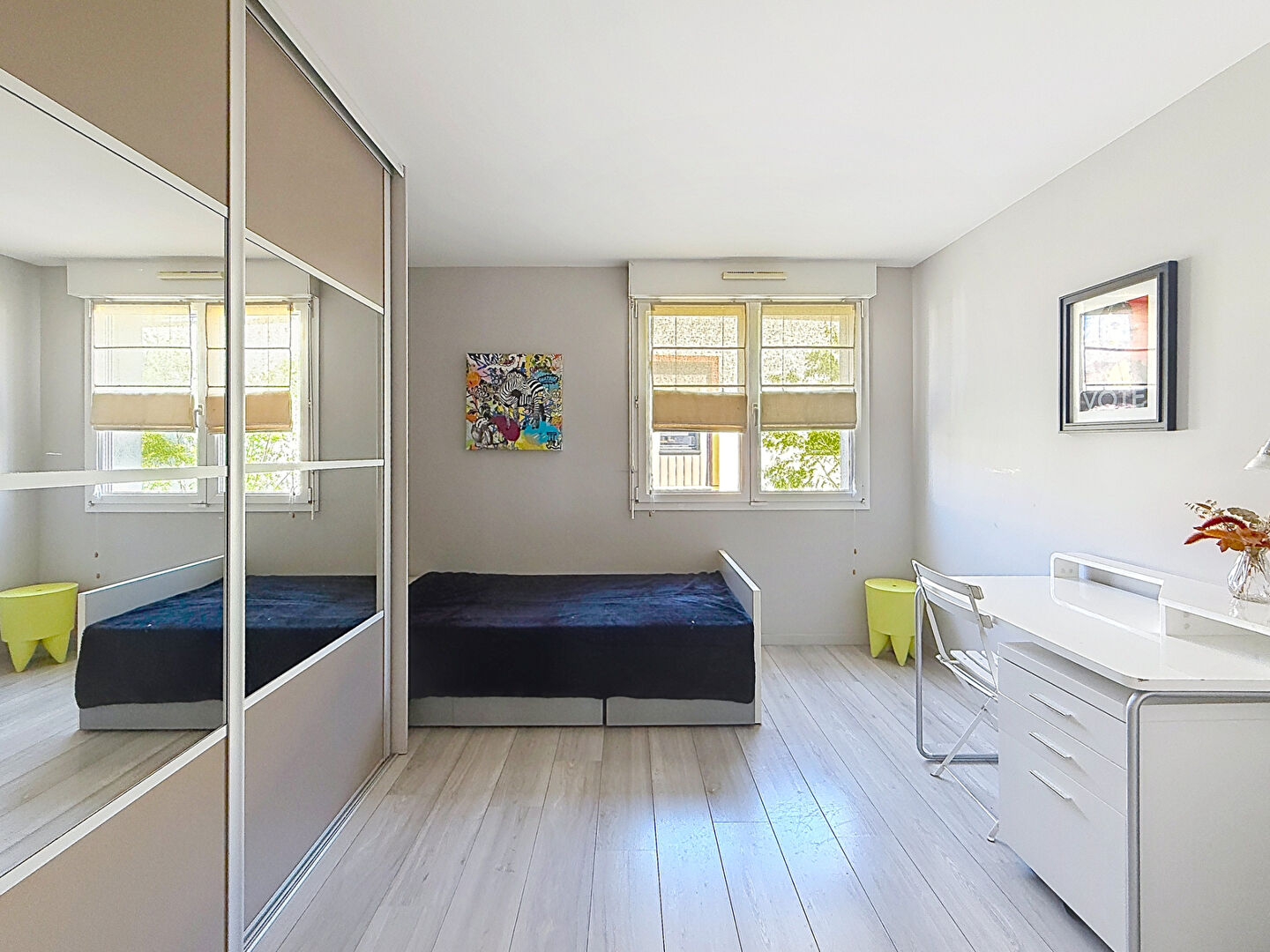 Le confort de cet appartement est renforcé par un chauffage au sol et par la motorisation des volets pour les baies vitrées.