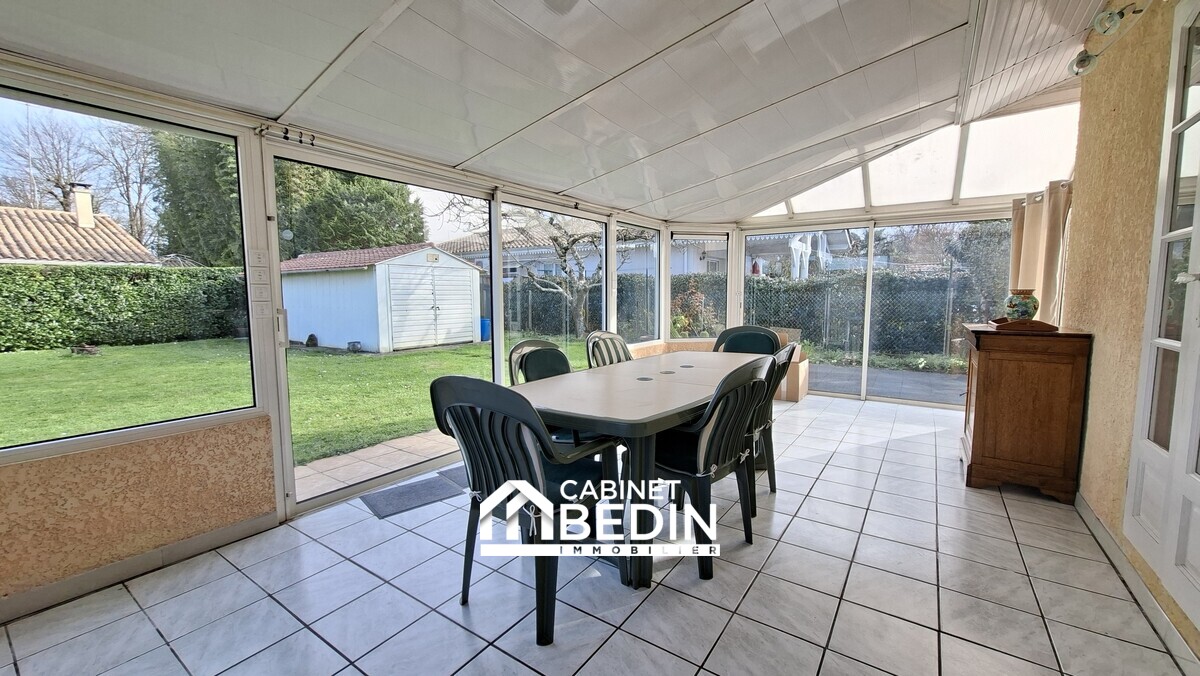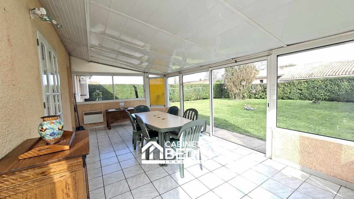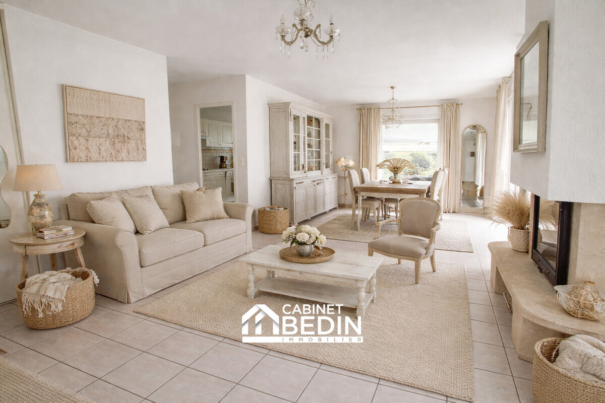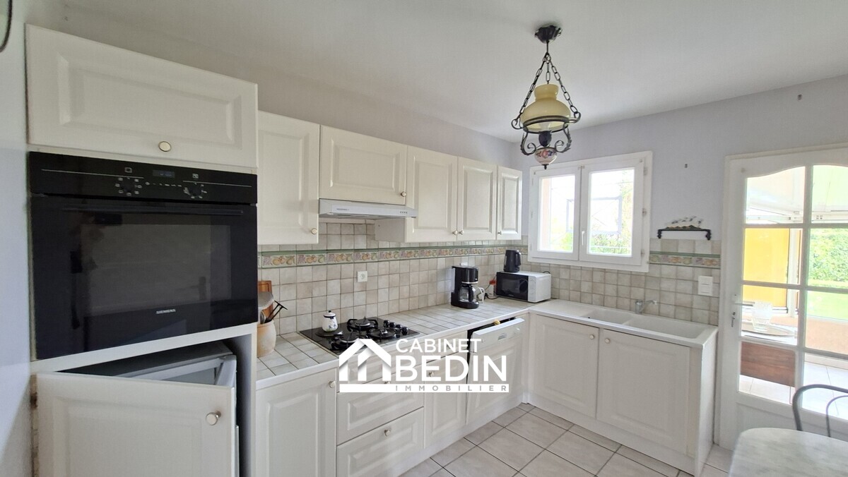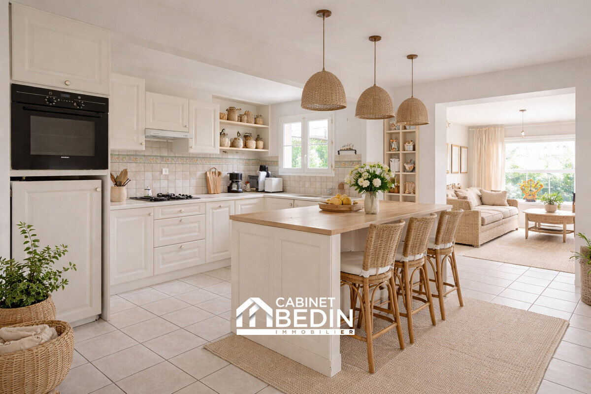 Elle se compose d?un séjour lumineux bénéficiant d?une triple exposition, offrant une belle clarté tout au long de la journée. Une véranda chauffée attenante prolonge agréablement l?espace de vie et s?ouvre sur le jardin. La cuisine, indépendante et entièrement équipée, complète cet espace convivial.