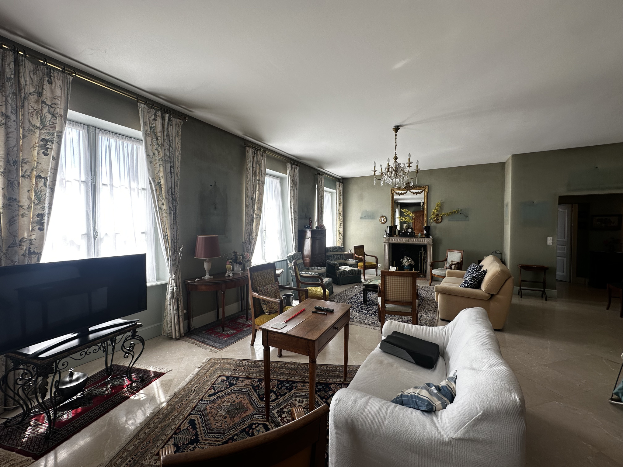 Il se compose d'une entrée spacieuse, d'un vaste salon séjour de plus de 50 m2 baigné de lumière, d'une cuisine, 4 chambres, un bureau, une salle de bain avec wc, une salle d'eau, un wc indépendant et une lingerie.
