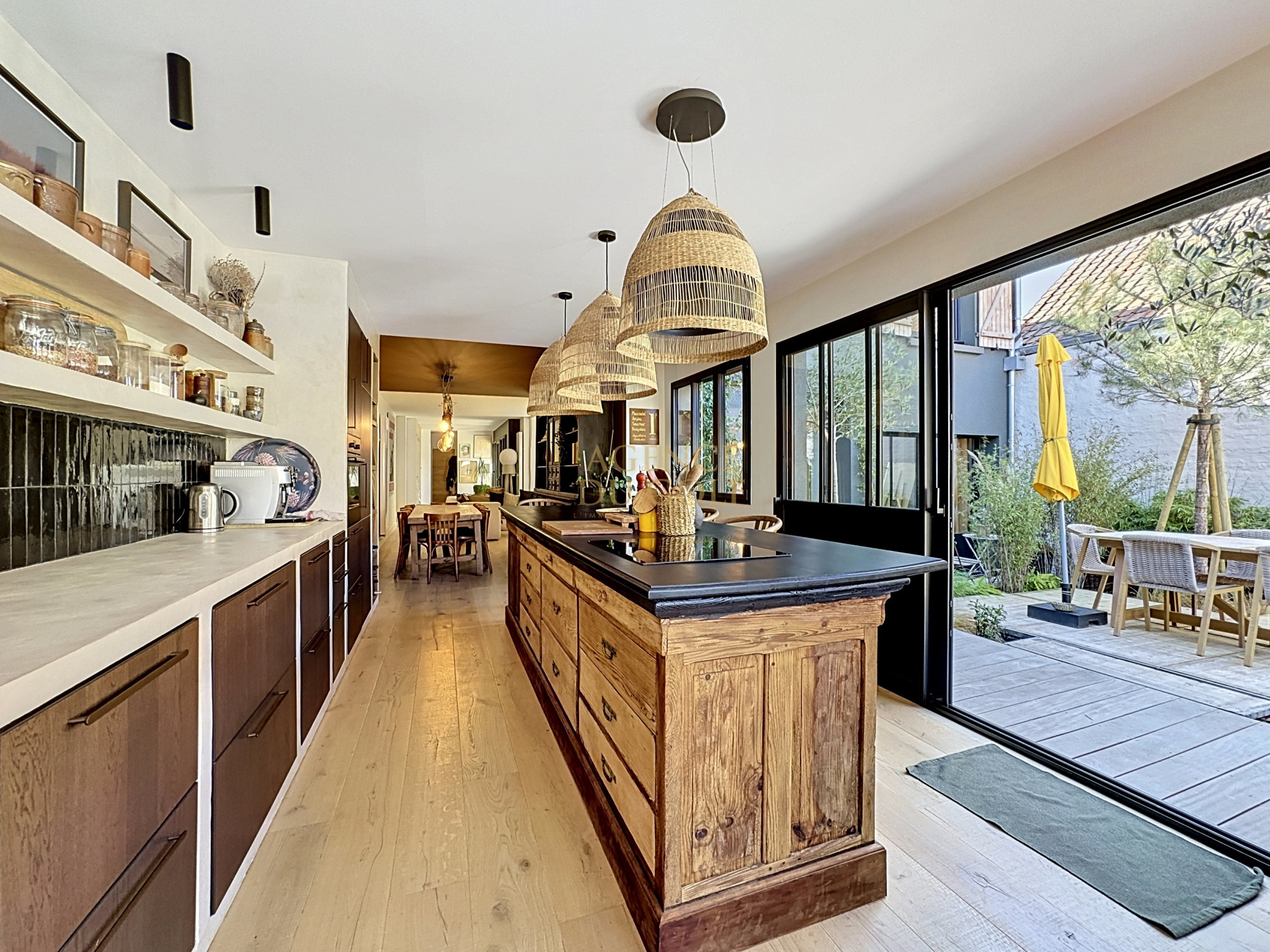 A l'abri des regards et à quelques pas de la mer comme des commerces, se dévoile une propriété singulière, inspirée de l'esprit 'RIAD', où chaque espace invite à la sérénité.