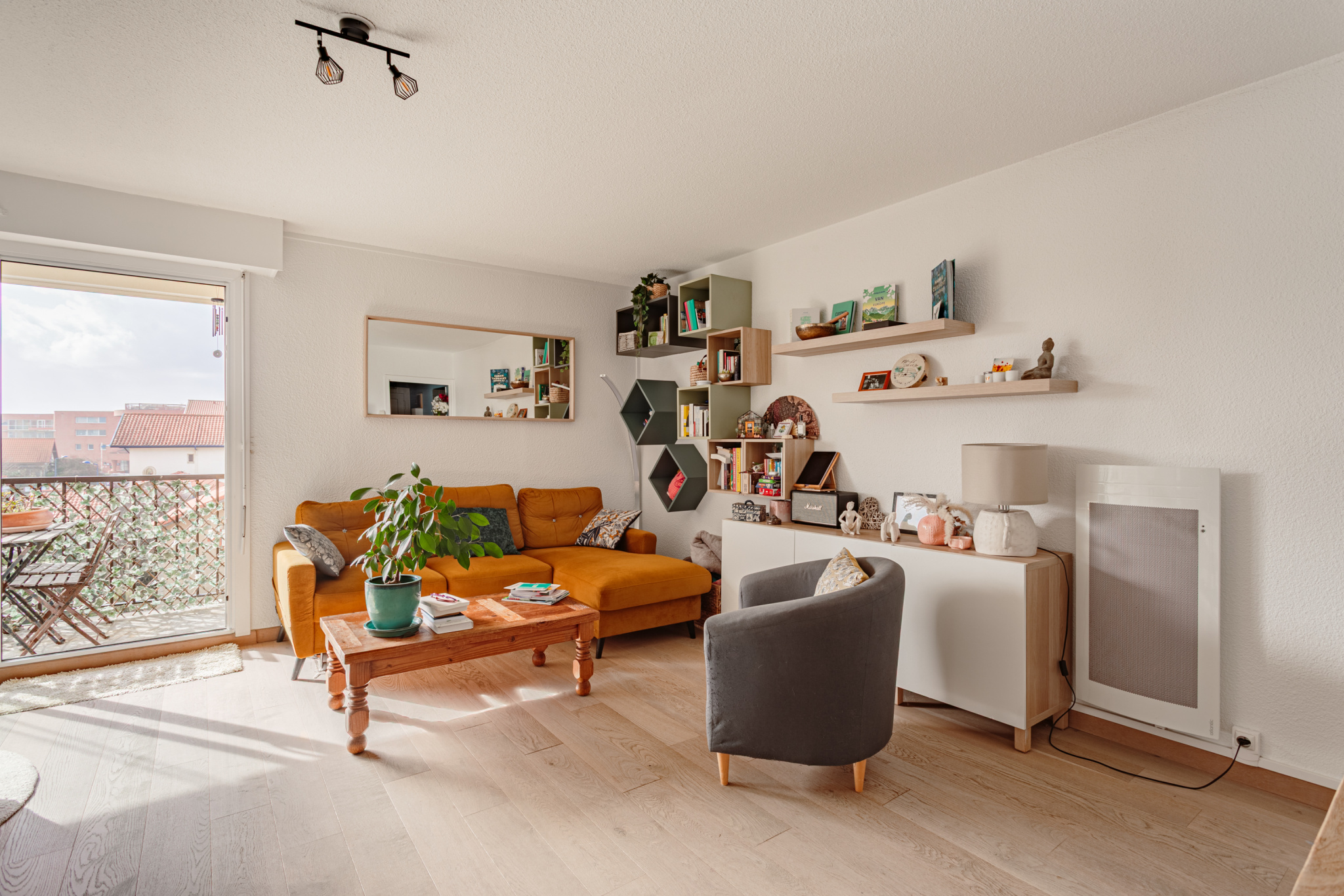 D'une surface de 74 m2, cet appartement exposé plein sud bénéficie d'une luminosité exceptionnelle tout au long de la journée.
