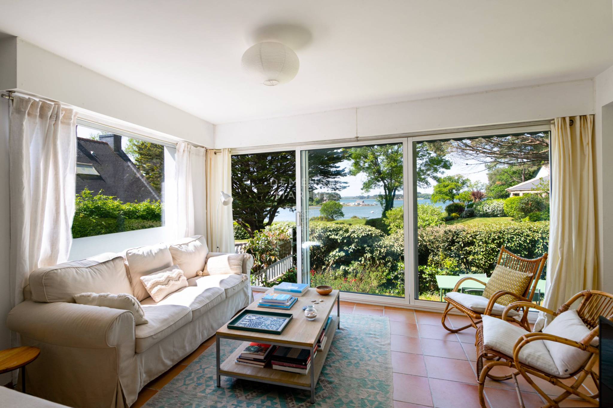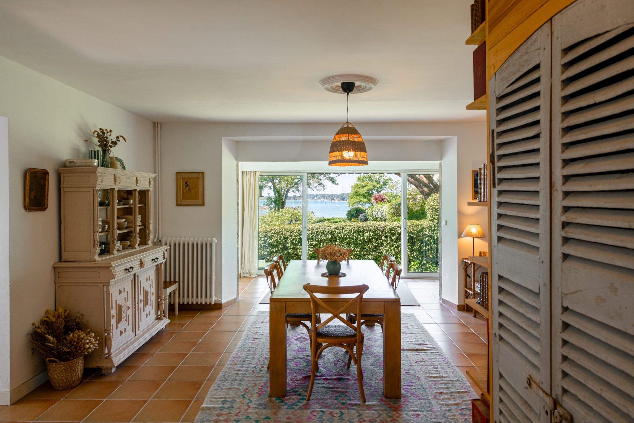 Demeures Marines vous dévoile en exclusivité « Villa Stella », une élégante demeure familiale d'environ 290 m2, nichée sur les rives préservées de la Ria d'Étel, à Locoal-Mendon, dans le Morbihan. La nature s'impose avec délicatesse. Sauvage, vivante, elle compose un décor en perpétuel mouvement, où la lumière et les marées redessinent chaque jour les contours du paysage. Cette maison de villégiature incarne l'esprit des vacances, un lieu où le temps semble suspendu.