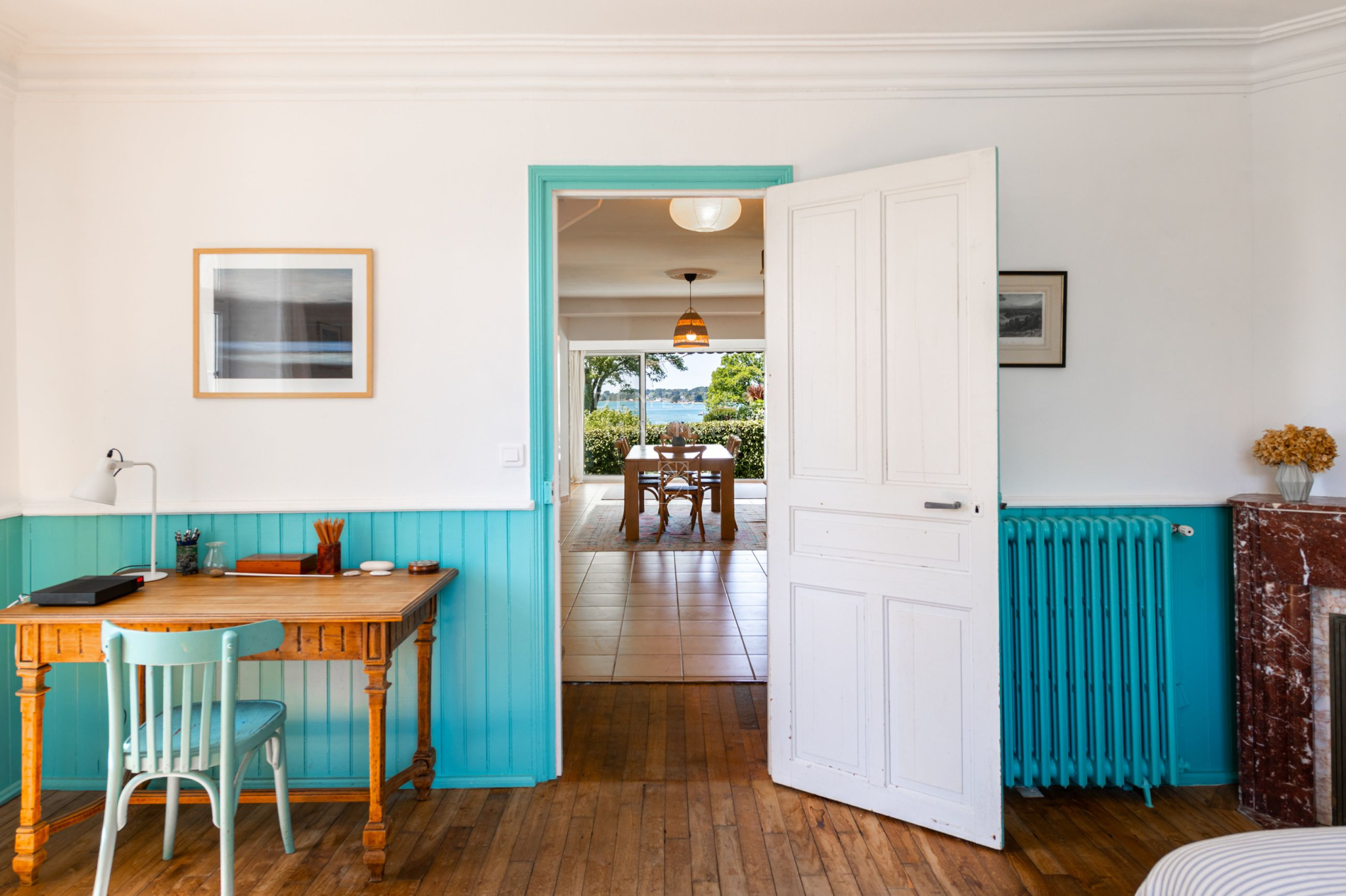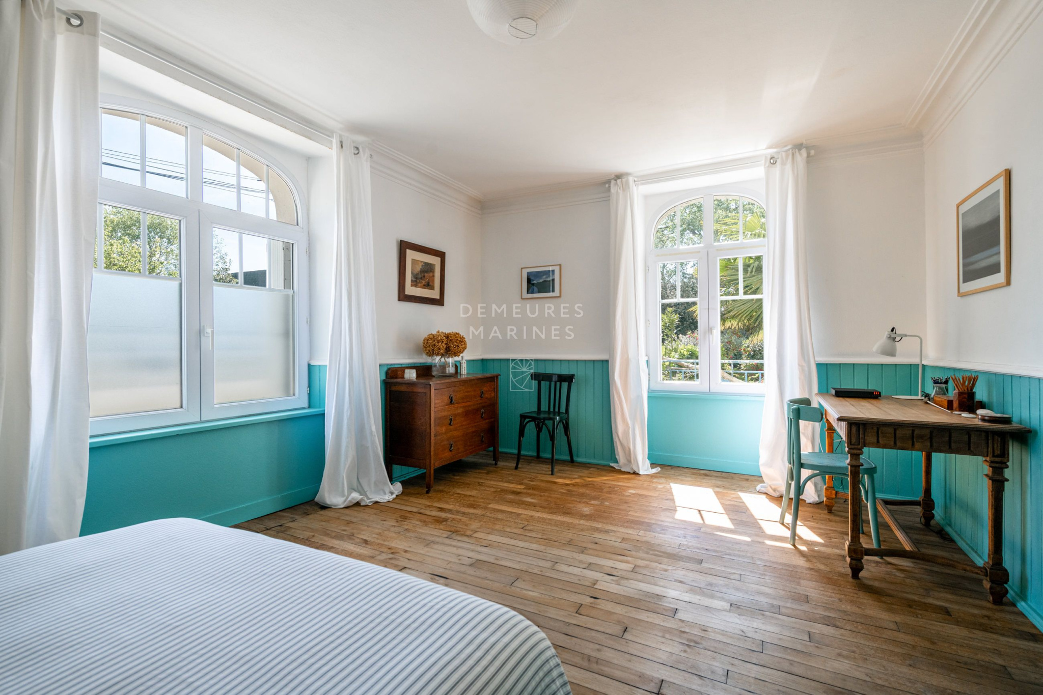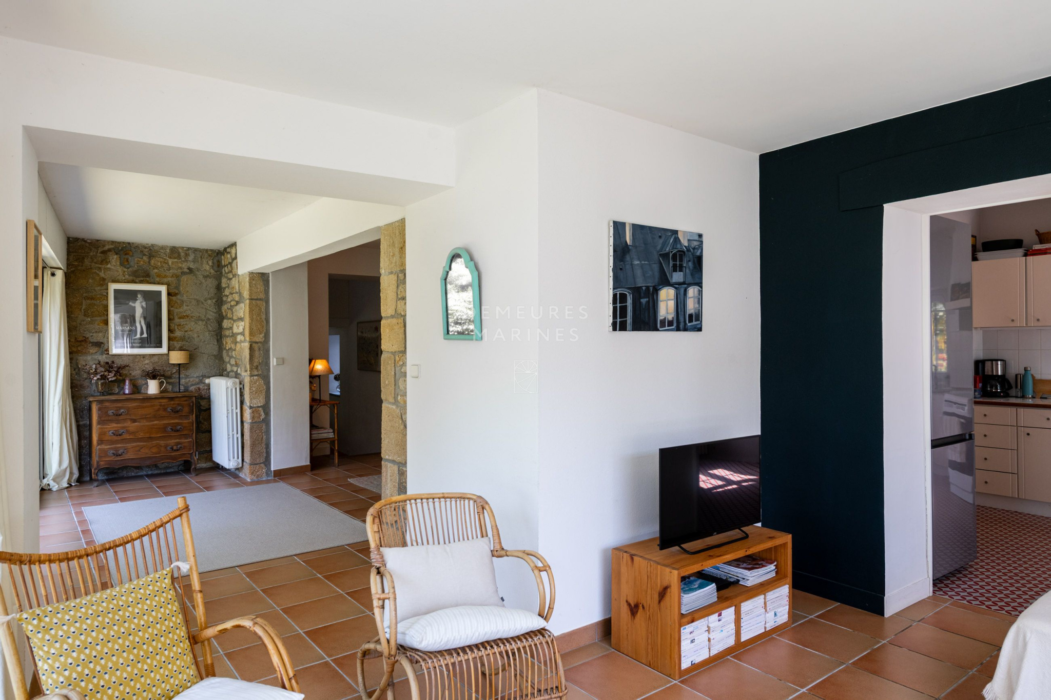 Mariage subtil entre l'élégance d'une bâtisse des années 30 et le caractère authentique d'une maison en pierre, elles dévoilent une atmosphère douce et accueillante. Parquet ancien, pierres apparentes, fenêtres arrondies et belles hauteurs sous plafond racontent une histoire, celle d'un lieu habité avec soin, où charme et authenticité s'expriment avec justesse. Les espaces sont généreux, baignés de lumière, et s'ouvrent naturellement sur le jardin et les rives.