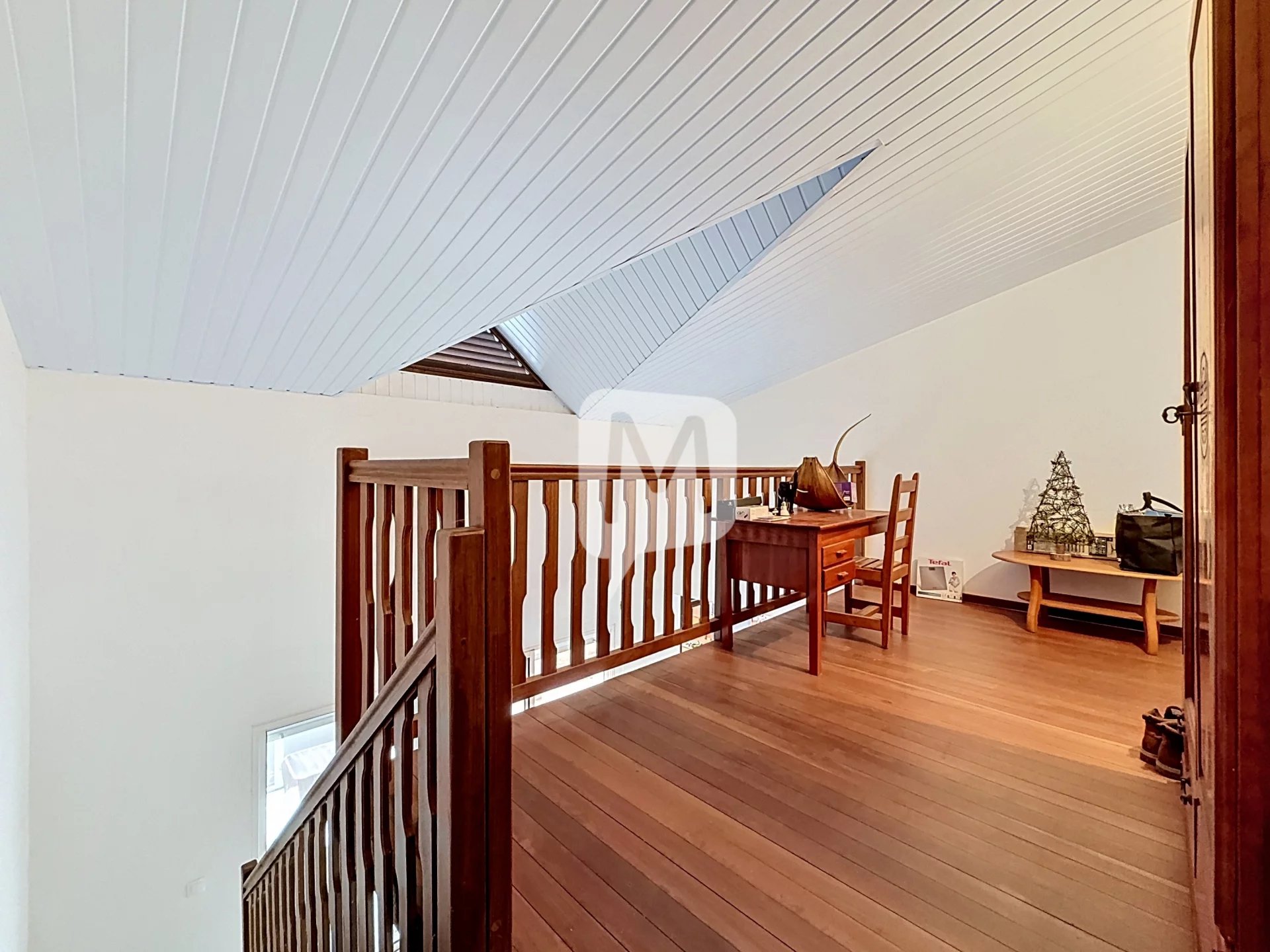 Côté jour, cette maison vous offre une cuisine aménagée et équipée d'une plaque de cuisson, d'une hotte et d'un four avec un passe-plat orienté sur la terrasse. Vous profiterez d'un grand séjour lumineux de 21 m2 avec un accès à une mezzanine de 11 m2 aménageable.