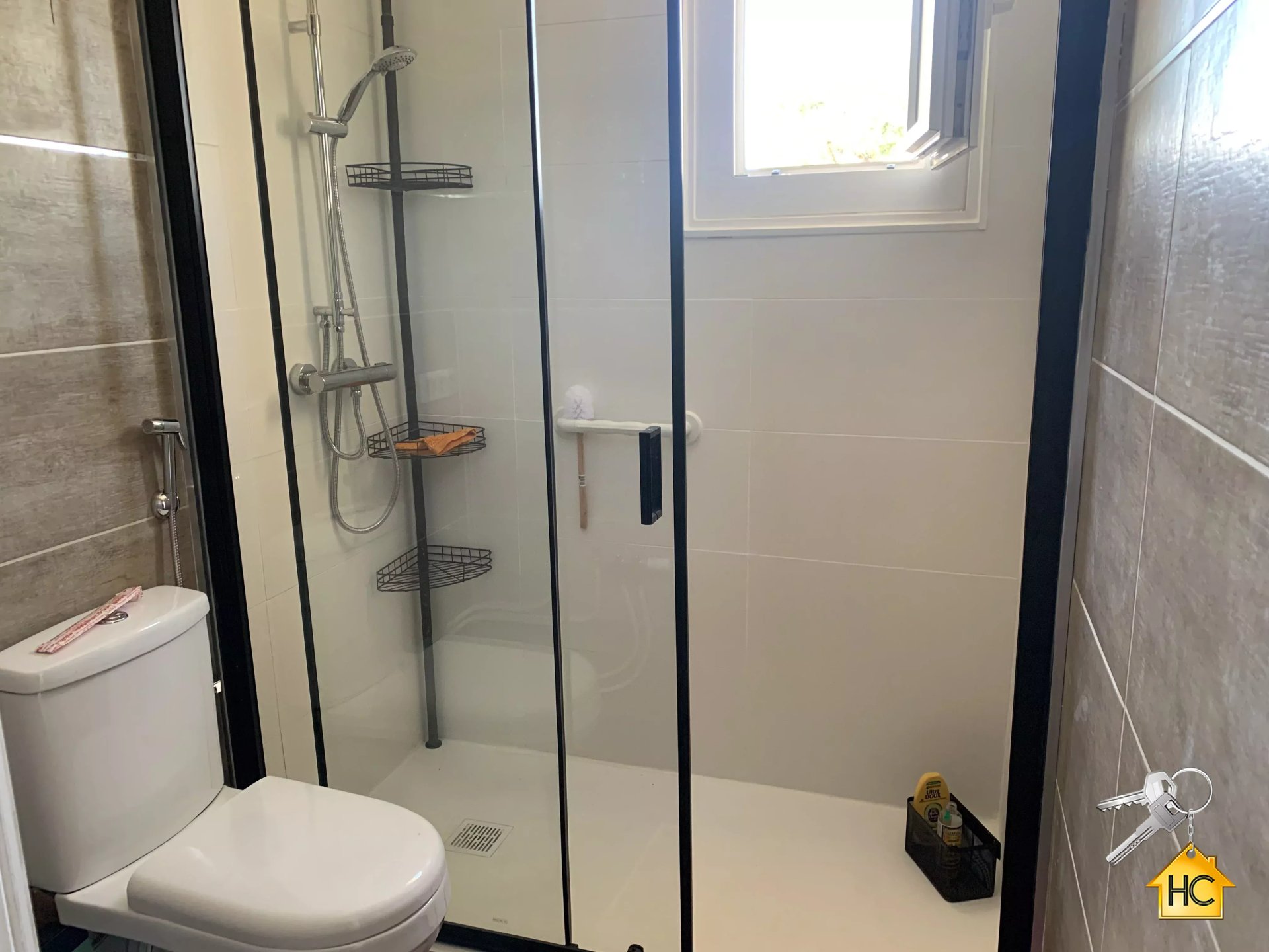 Il se compose d'une entrée avec placards, d'un spacieux séjour avec cuisine équipée, de 2 chambres avec placards dont une avec un accès extérieur, d'une salle d'eau avec douche et wc, ainsi qu'un wc indépendant.
