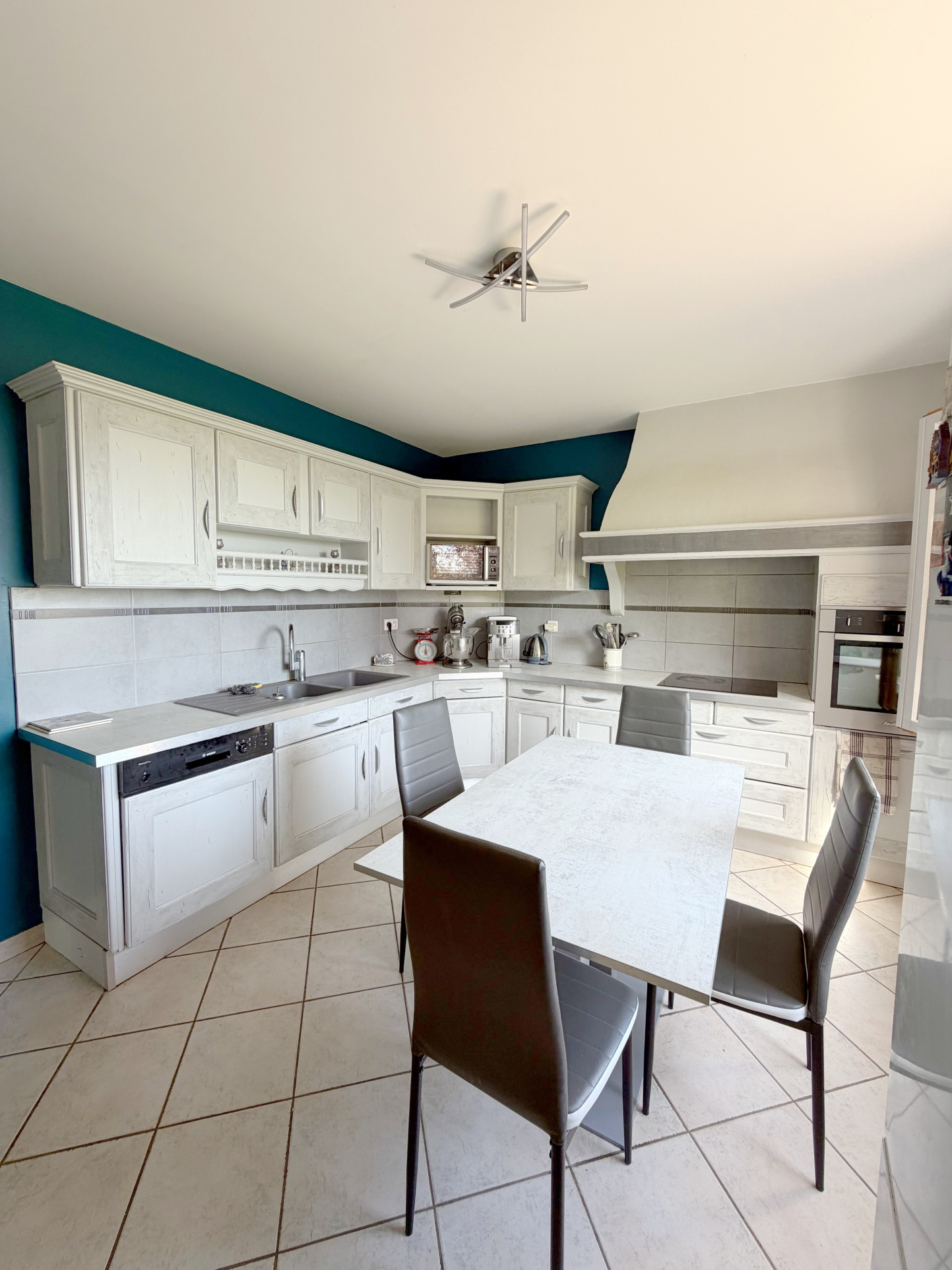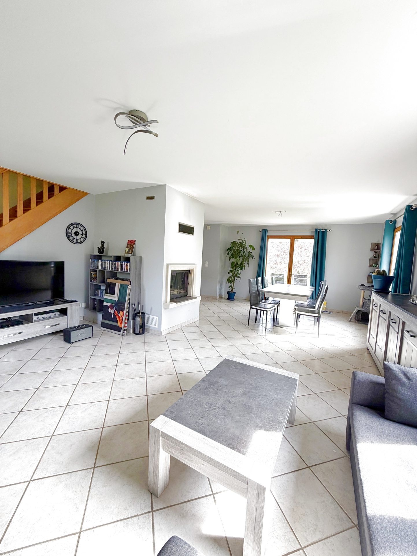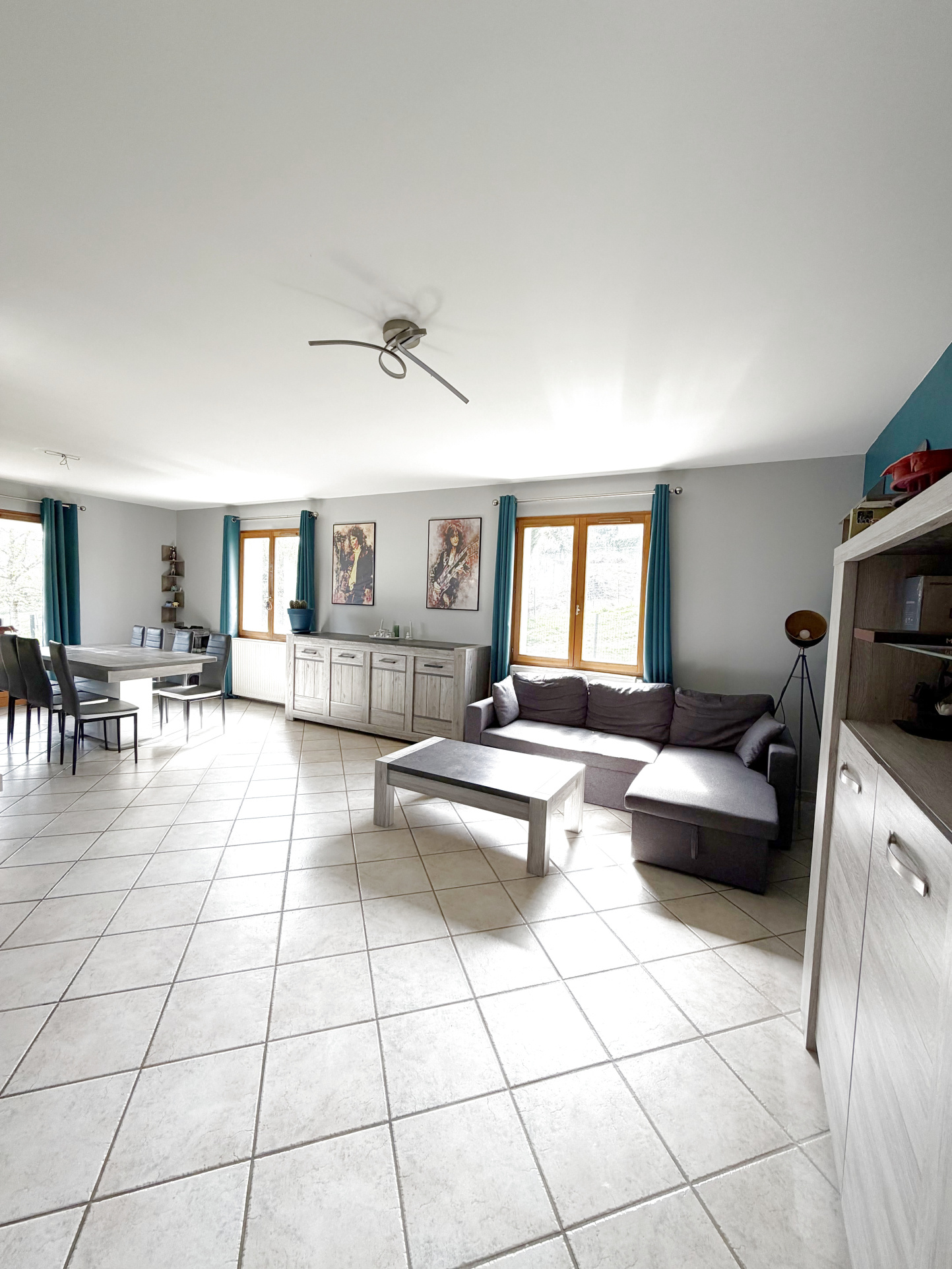 Elle s'ouvre sur un vaste salon-séjour baigné de lumière, complété par une belle cuisine et une buanderie fonctionnelle.