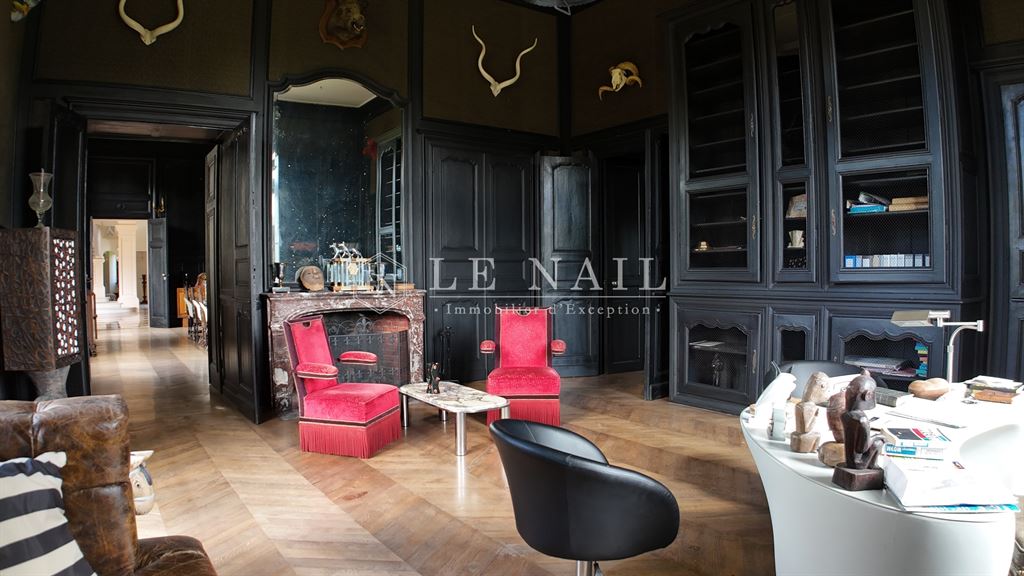 Derrière ses élégantes façades de pierres de taille en granit se déploient de vastes volumes de réception baignés de lumière et donnant de belles perspectives extérieures. Ces pièces sont sublimées par des éléments d’époque soigneusement préservés : porte d’entrée moulurée à pinacles et fleurons, cheminées monumentales, boiseries, escalier monumental à balustre, autre escalier en vis.