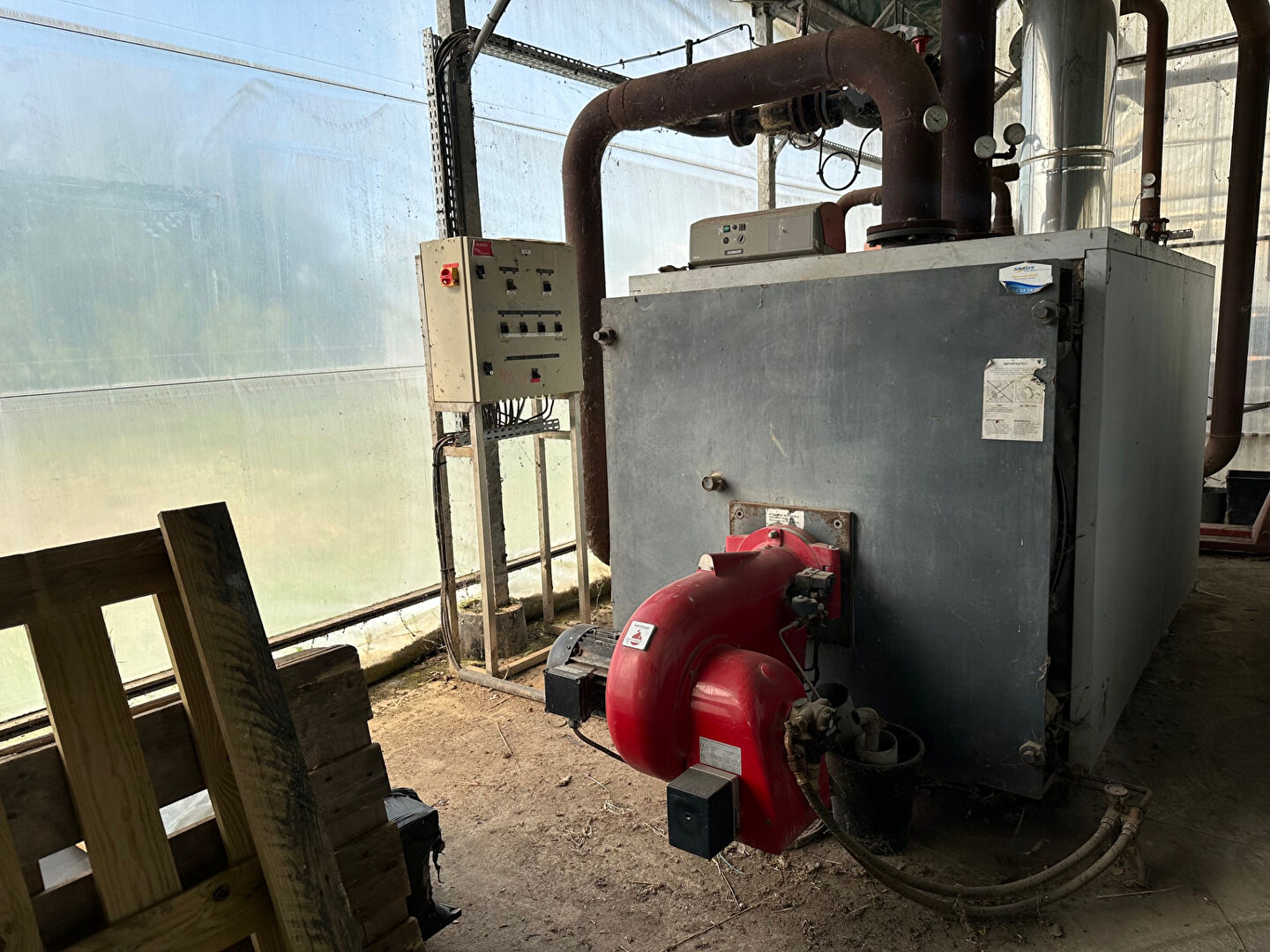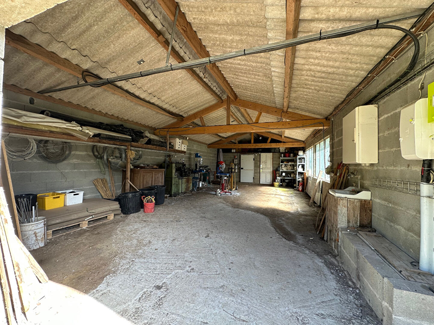Ce bien se compose d'un hangar de stockage avec chambre froide pouvant faire office de magasin de vente, une serre à réhabiliter de 1488 m2, bâche et certain ouvrant de deux forages, parking eau et électricité.