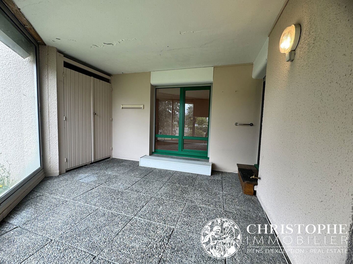 Le séjour, lumineux et spacieux, ainsi que la cuisine indépendante donnent accès à un agréable balcon avec terrasse/loggia d'environ 12 m², idéal pour profiter d'un extérieur en toute saison.