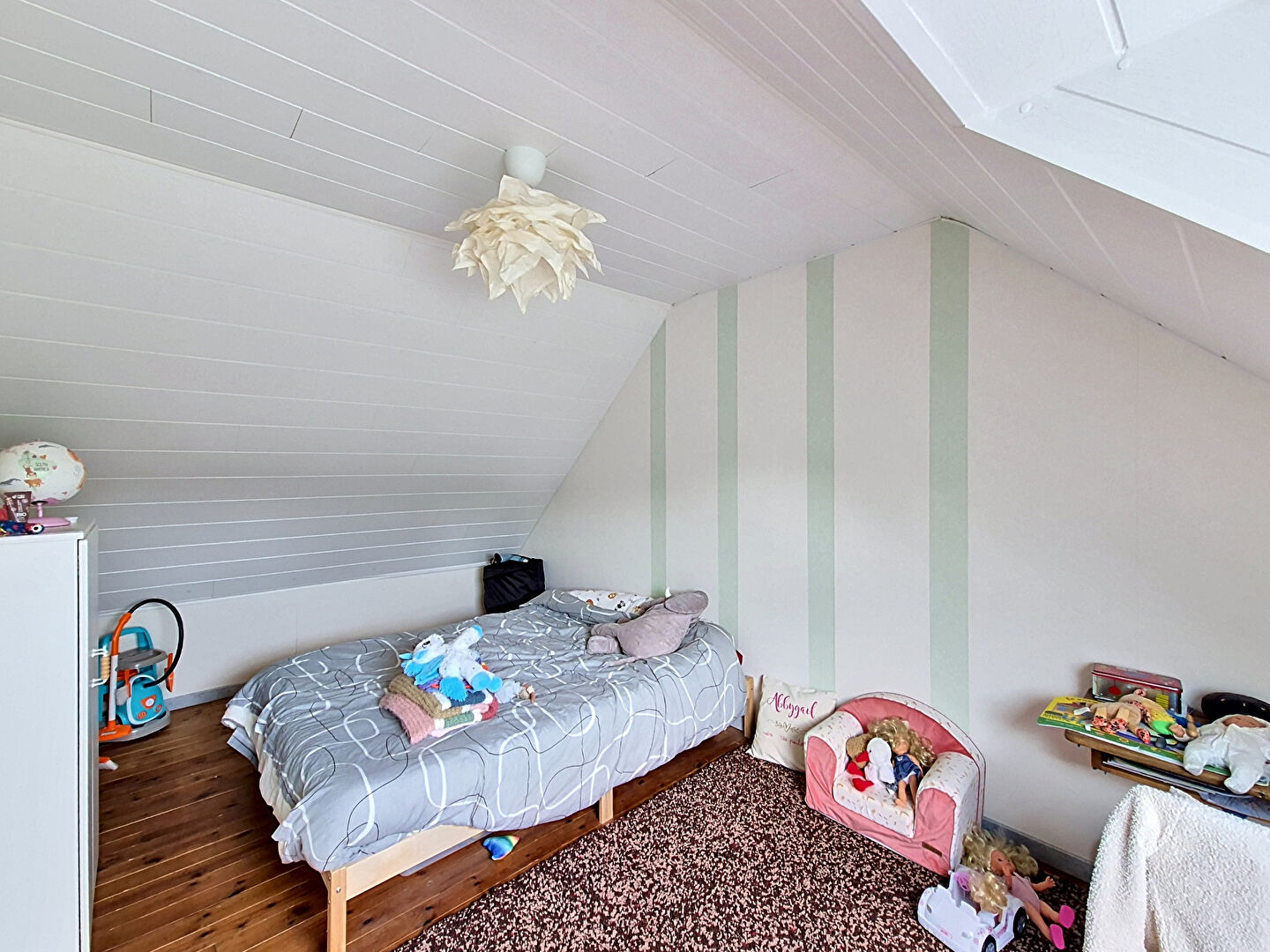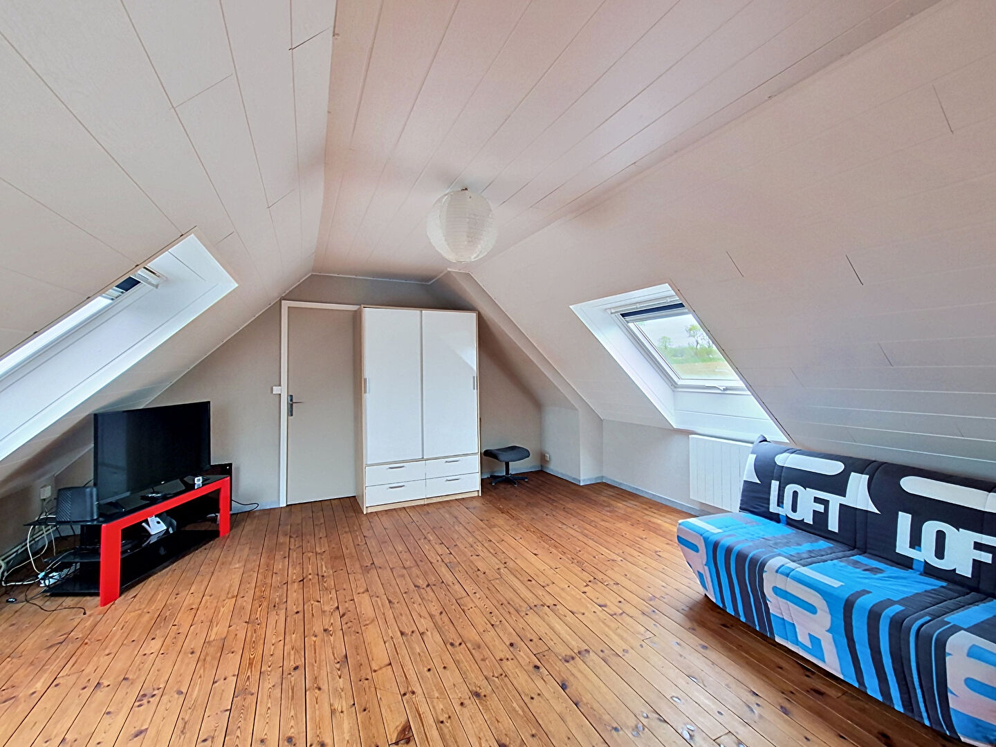 À l'étage, une grande mezzanine dessert deux chambres, offrant un bel espace pour accueillir famille ou amis.