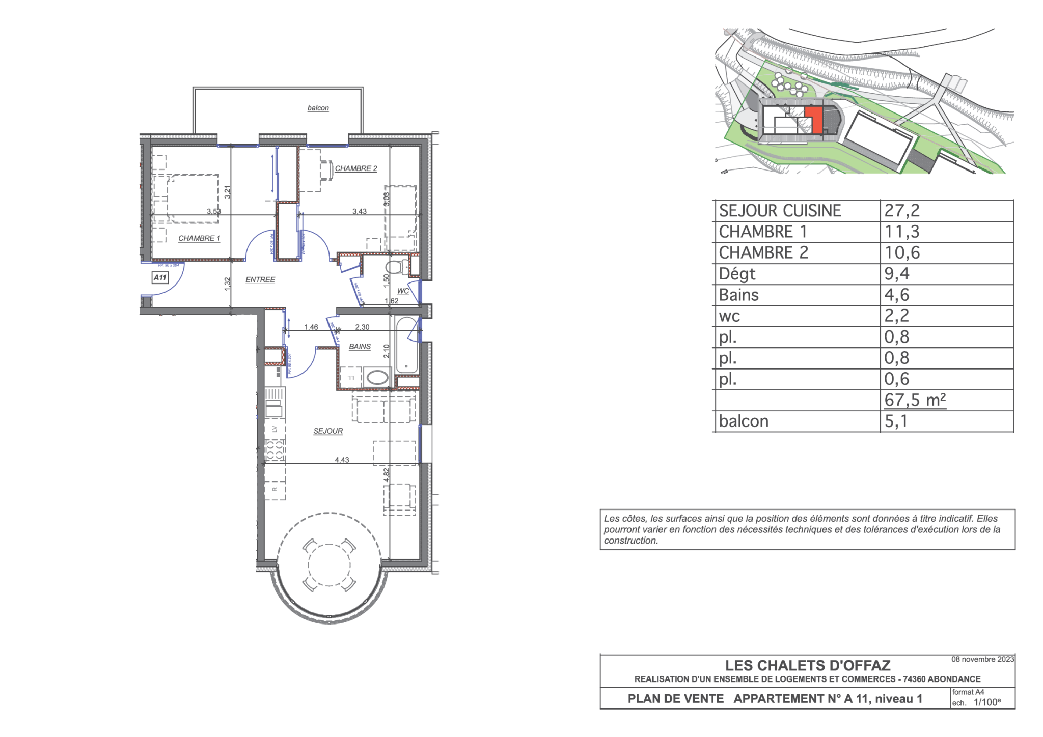 Appartement T3, à terminer selon vos choix des matériaux et des couleurs (carrelage et ou sol stratifié pour les chambres, dans la gamme standard), meuble vasque, WC suspendu, dans cette résidence contemporaine et confidentielle, au coeur d'Abondance, aut...