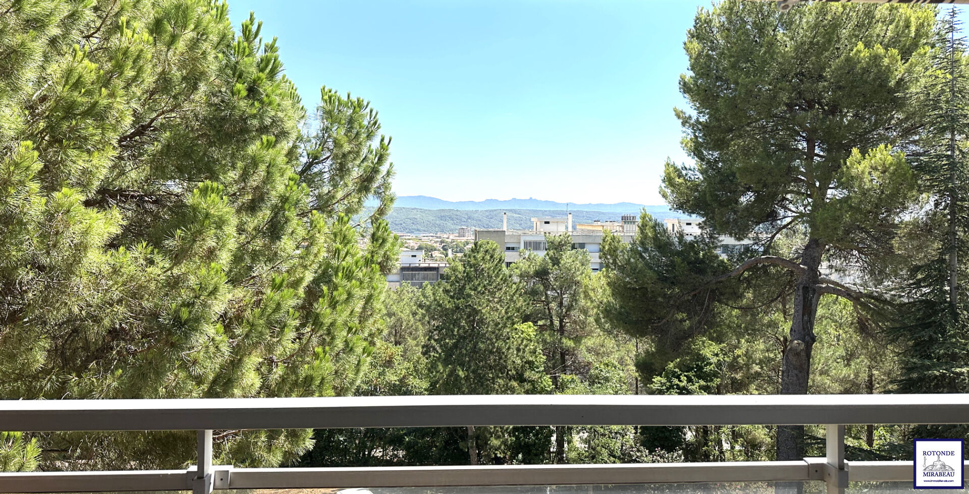 A VENDRE A AIX-EN-PROVENCE - QUARTIER NORD EN POSITION DOMINANTE ET ETAGE ELEVE AVEC ASCENSEUR : BEAU 3 PIECES TRAVERSANT DE 86M2 DANS UNE RESIDENCE DE STANDING ARBOREE ET FERMEE : SEJOUR SUR TERRASSE EXPOSEE SUD AVEC BELLE VUE SUR LA CHAINE DE L'ETOILE, ...