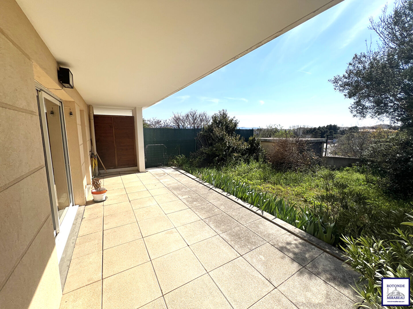 A vendre à Aix-en-Provence - quartier St Mitre : Dans résidence sécurisée au calme proche des commodités et de la ligne A (Aixpress) : 3 Pièces de 65,95 m2 en RDJ avec grande terrasse et garage double de 24,61m2. Cet appartement, entièrement au goût du jour, c...