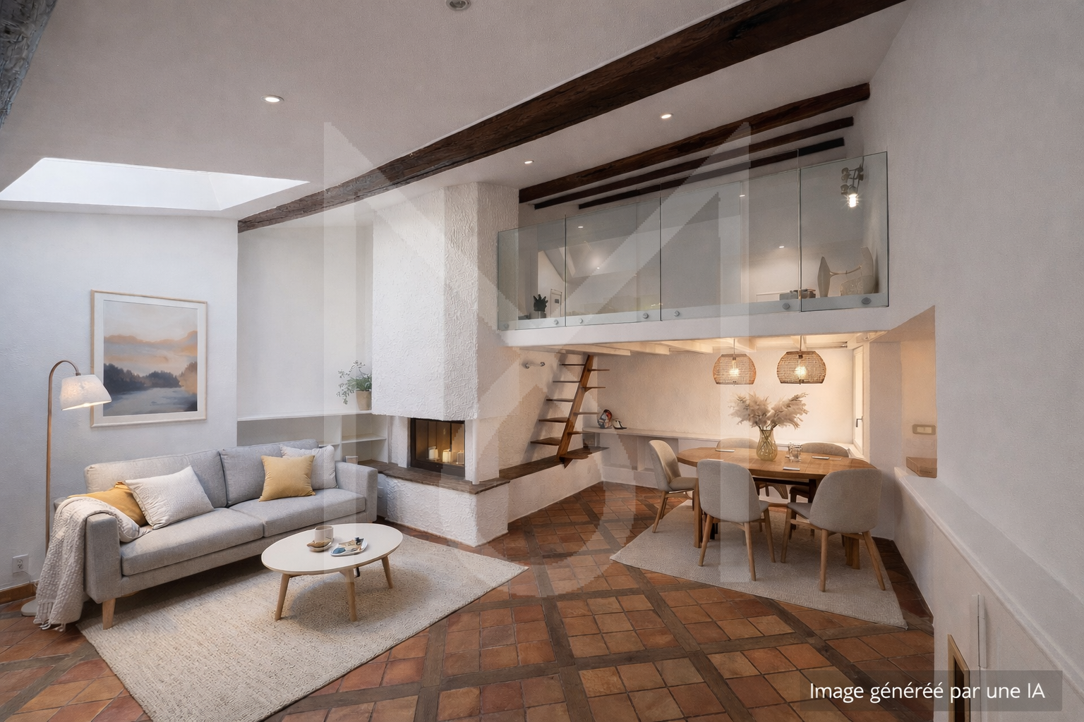 A vendre au coeur du centre-ville historique d'Aix-en-Provence, sur la Place de l'Hôtel de ville : Dans un petit immeuble entretenu, en deuxième et troisième étage : Duplex atypique de caractère de 79m2 au sol dont 60m2 en Carrez, très lumineux grâ...