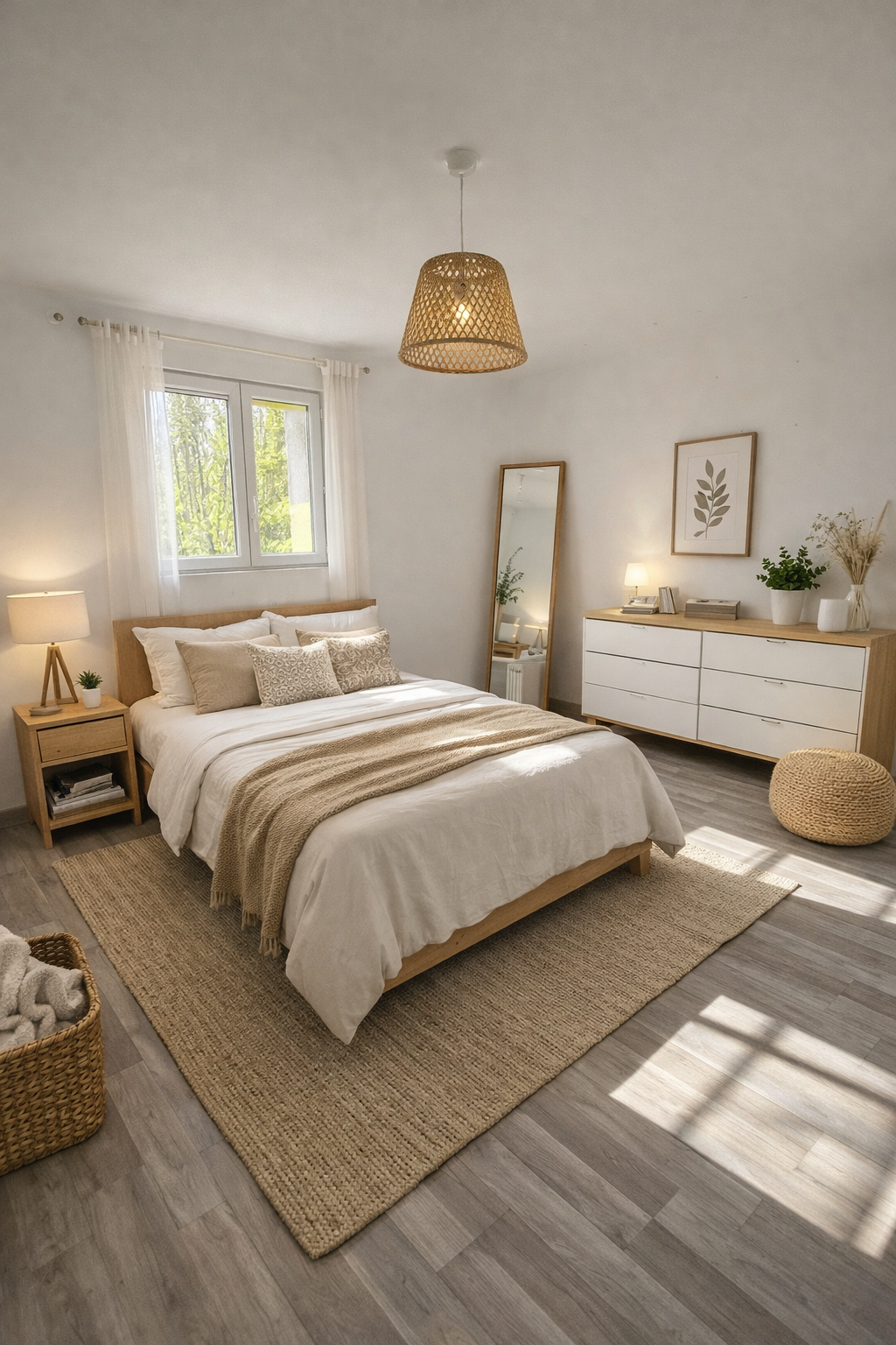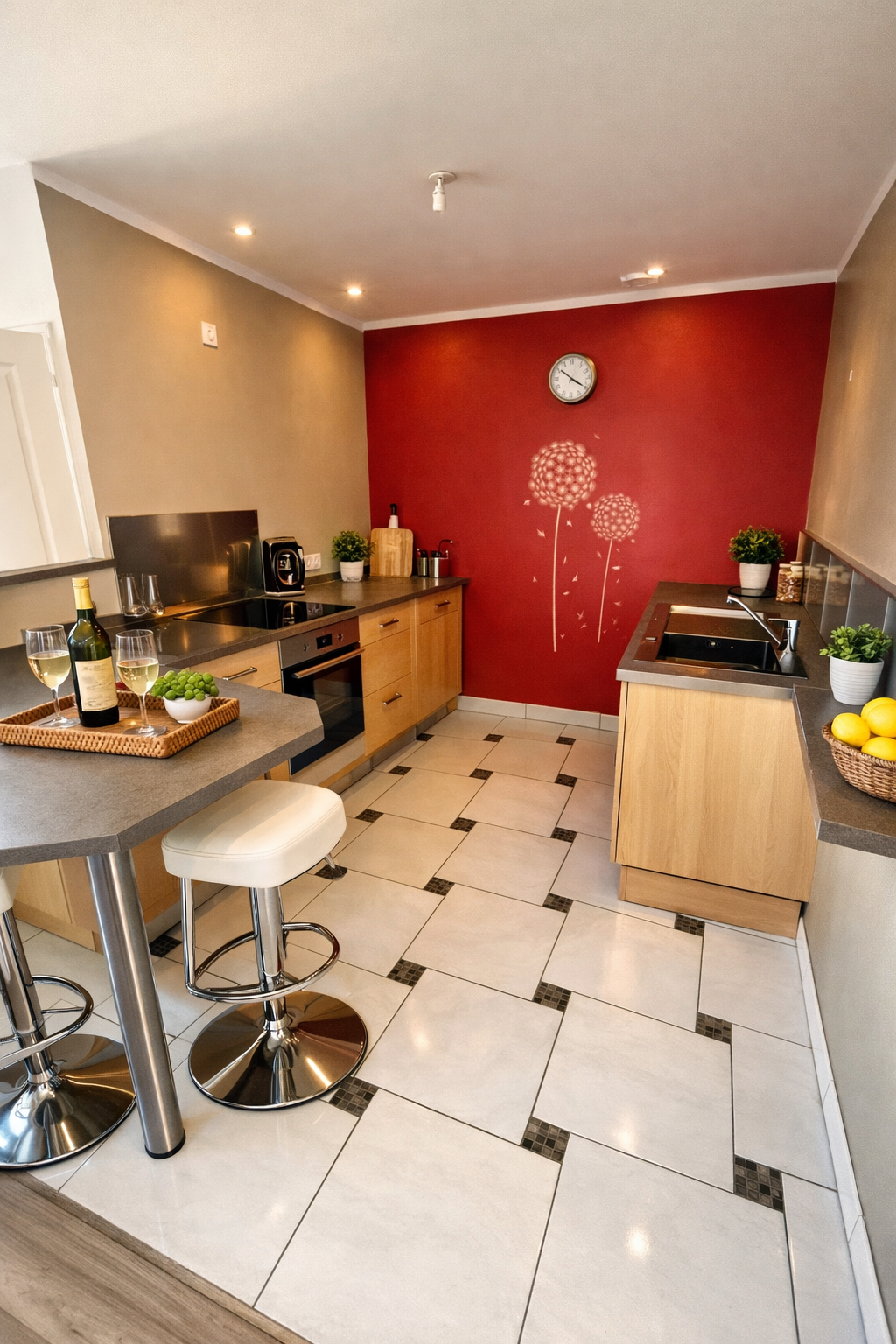 Il comprend : une entrée, séjour et cuisine, deux chambres, salle d'eau, WC et penderie.