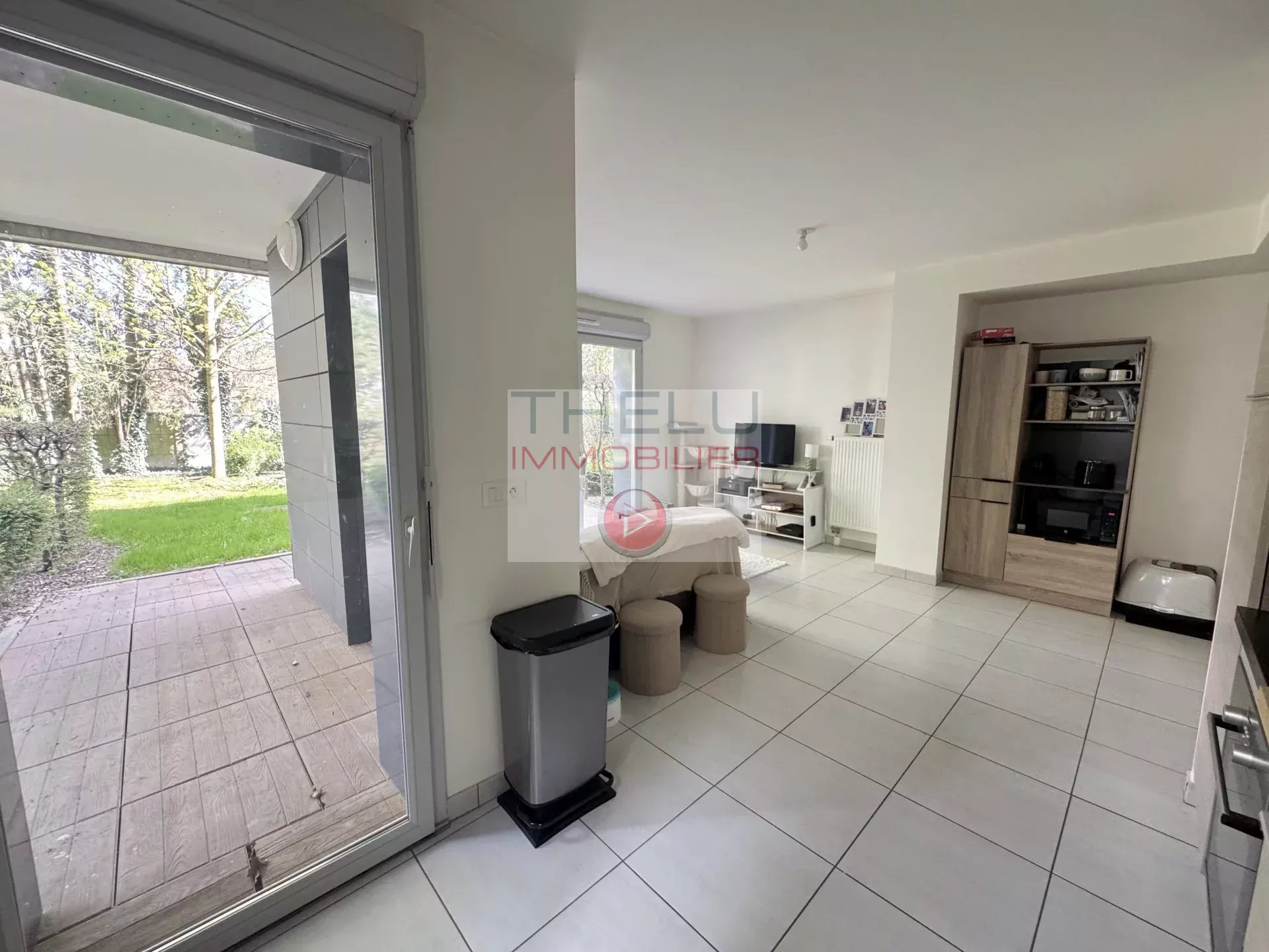 AMIENS SUD APPARTEMENT DE TYPE 3 EN REZ DE JARDIN Offrant, entrée avec placard, vaste séjour avec cuisine équipée, deux chambres, salle d'eau et wc.
