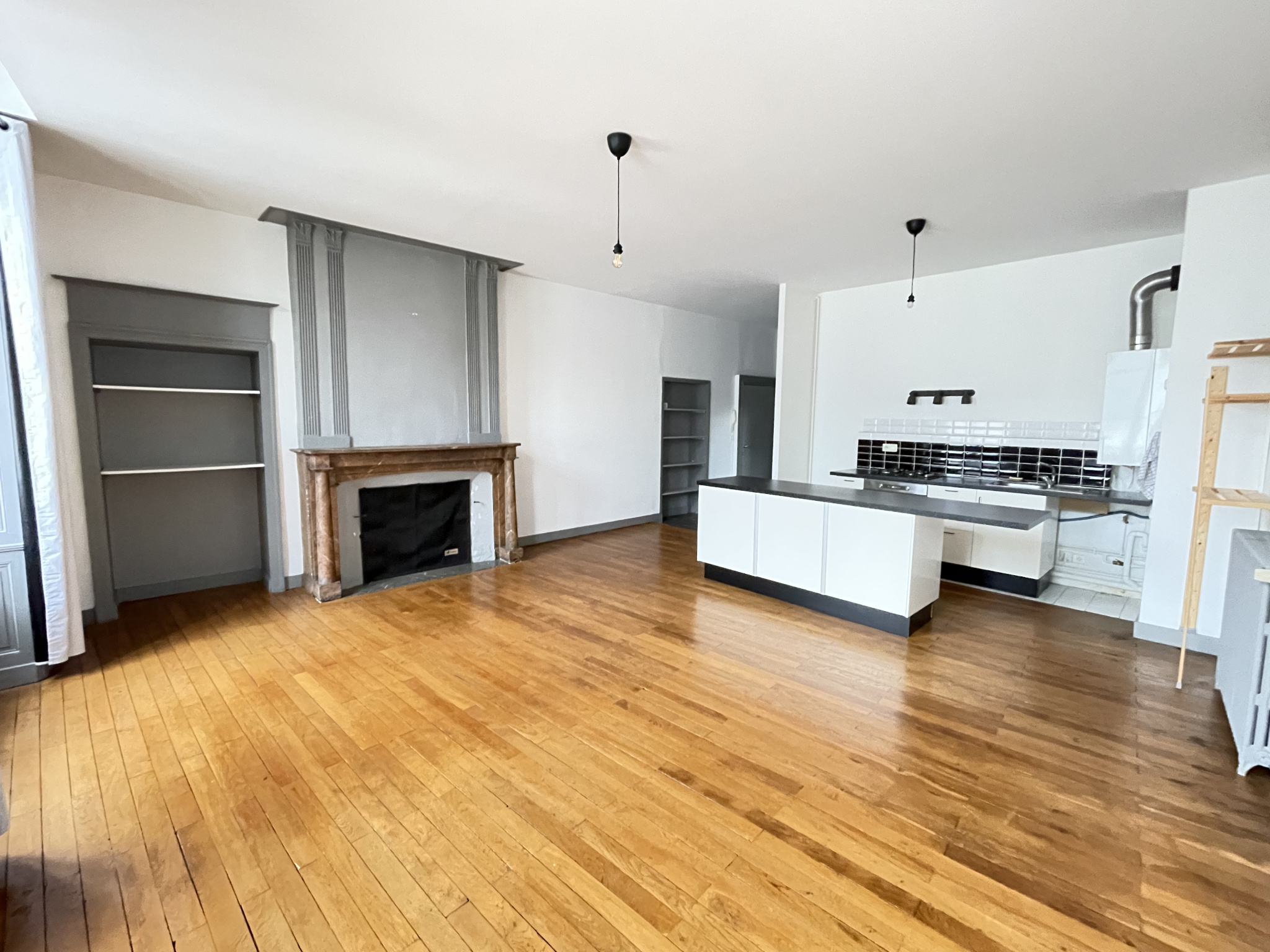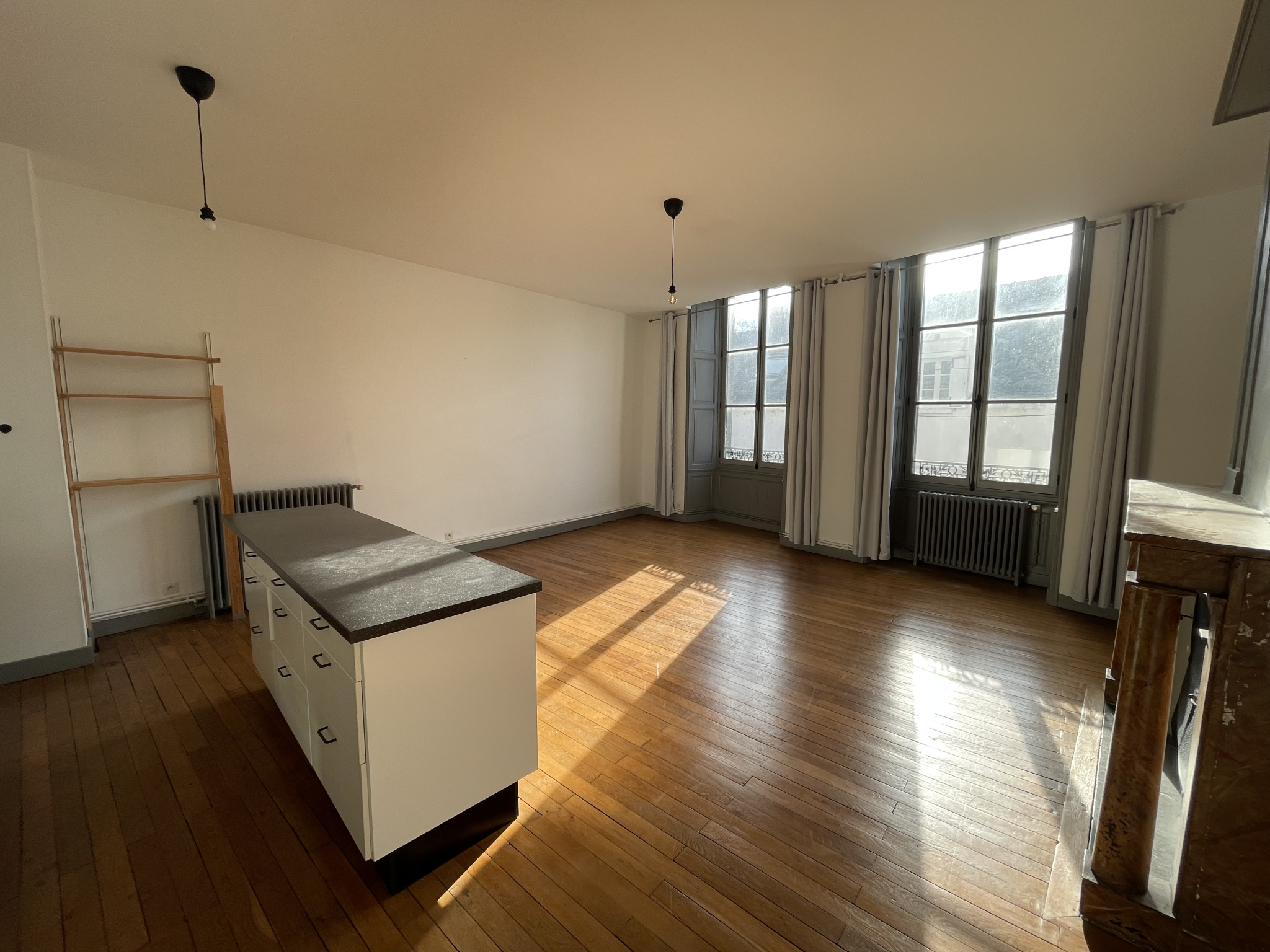 EXCLUSIVITE : Appartement 62 m2 en hypercentre d'Ancenis, refait à neuf (travaux : peintures, électricité, radiateurs, kitchenette aménagée/équipée (hotte, plaques inductions), salle-d'eau-wc, parquet flottant dans la chambre)