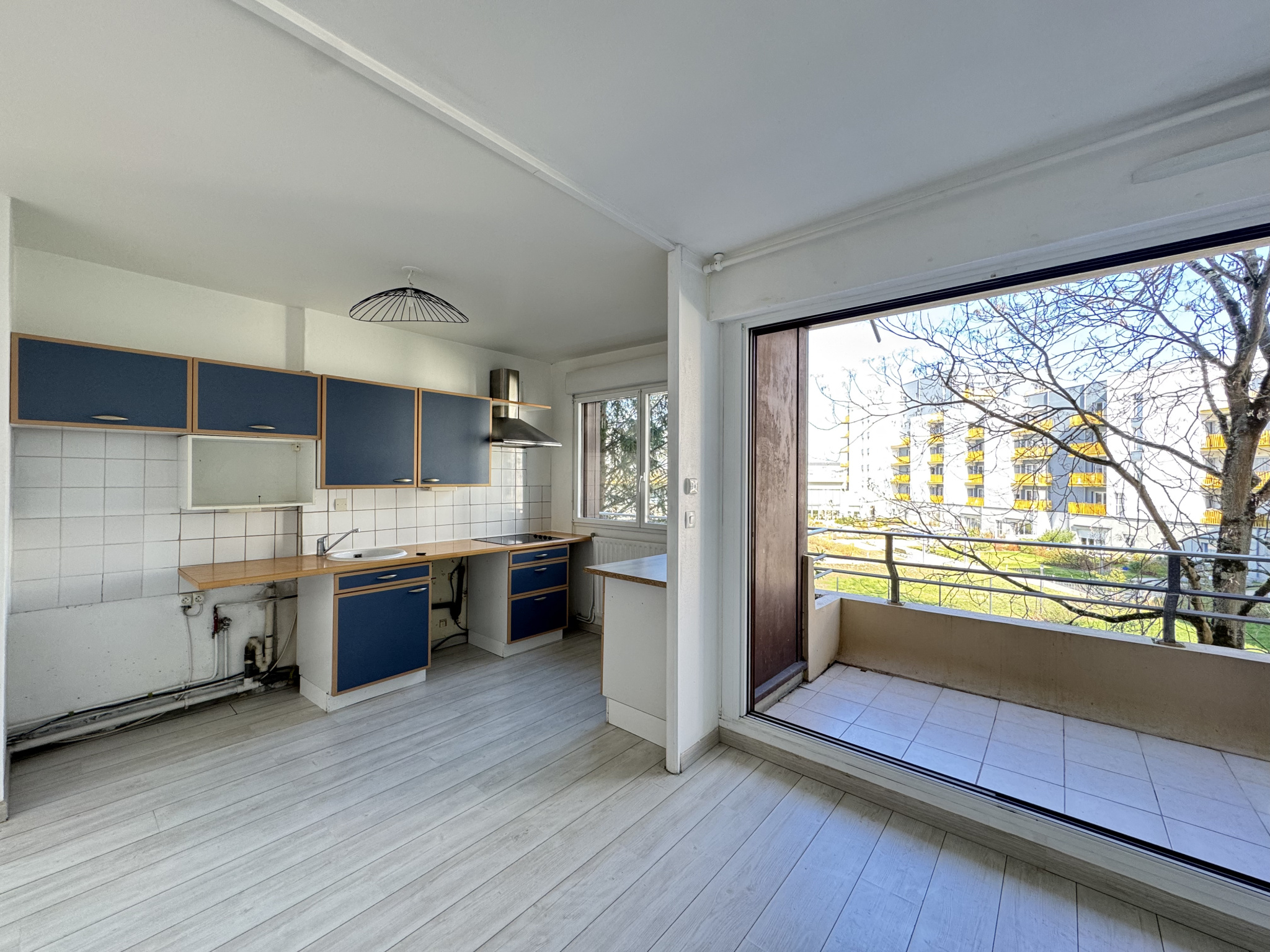 T3 lumineux avec balcon panoramique, vue dégagée, garage et cave.